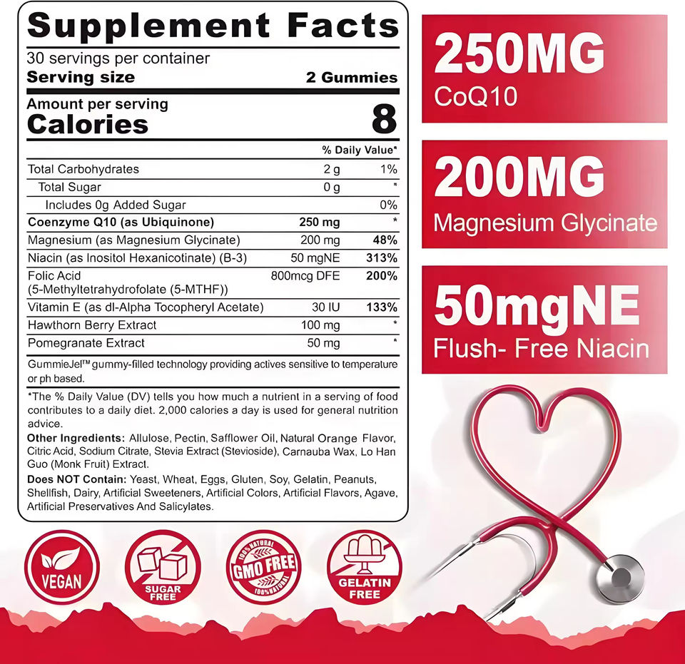 เยลลี่โคคิวเท็นไร้น้ำตาล ไนอะซิน ไม่ก่อให้เกิดอาการระคายเคือง กรดโฟลิก ดูดซึมได้ดี สำหรับบำรุงหัวใจ พลังงานเซลล์ และสารต้านอนุมูลอิสระ