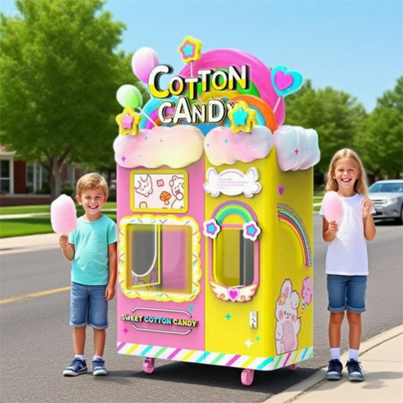 ตู้หยอดน้ำตาลเครื่องหยอดเหรียญบัตรเครดิตใช้ในร่มเครื่องหยอดเหรียญทำขนมสายไหม