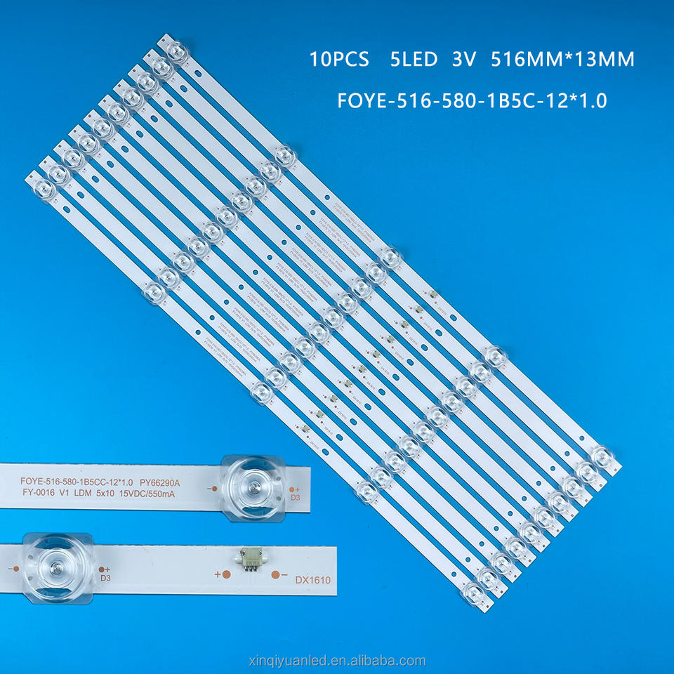 เหมาะสำหรับแถบไฟ LED ขนาด 58 นิ้ว FOYE-516-580-1B5C-12 * 1.0 สำหรับทีวี LCD แบ็คไลท์ พร้อมไฟ 5 ดวง และแถบอลูมิเนียม 10 แถบ