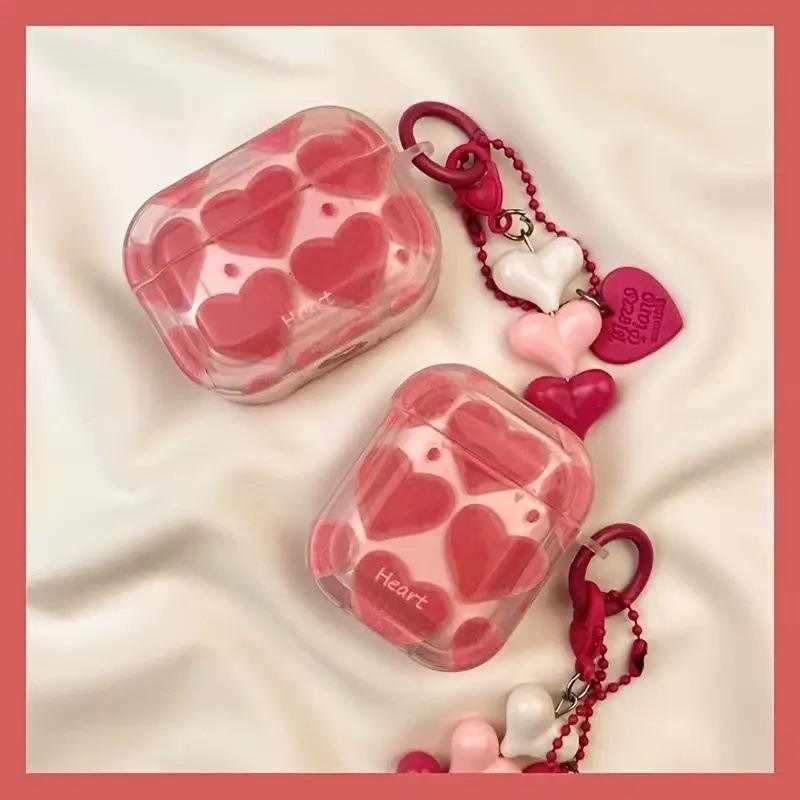 Product name:TPU Pink Heart with Love Pendant Full-Cover Anti-Drop Earphone Case