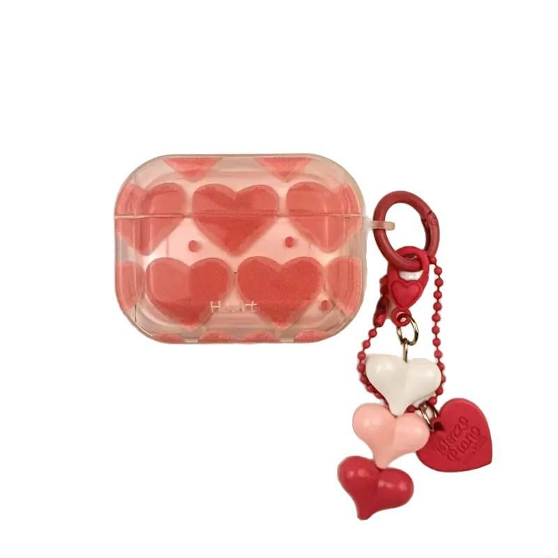 TPU Pink Heart with Love Pendant Full-Cover Anti-Drop Earphone Case