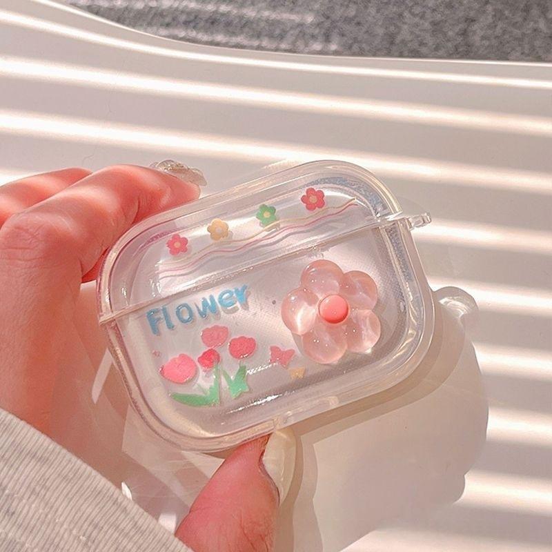 เคสหูฟัง TPU ลายดอกไม้สปริง ป้องกันการตกกระแทก แบบครอบคลุมเต็มรูปแบบ พร้อมจี้ห้อย