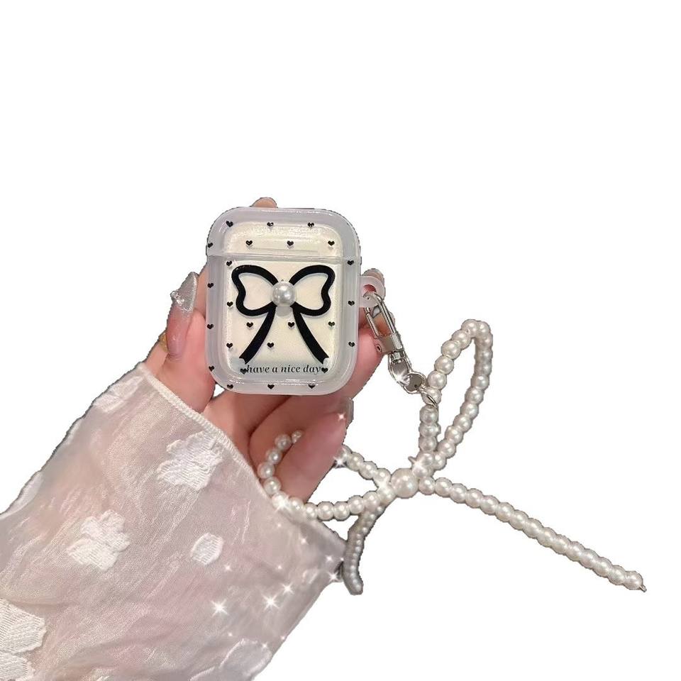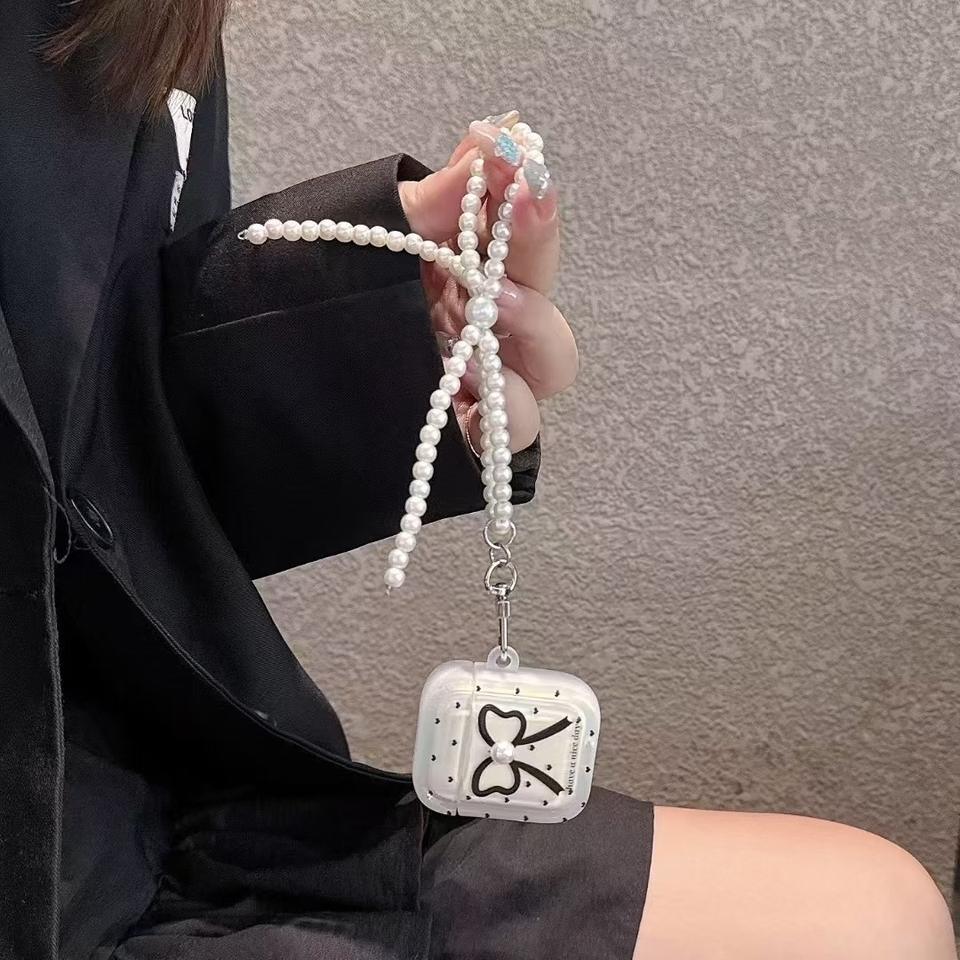 ชื่อสินค้า:เคสหูฟัง TPU ลายโบว์สไตล์เกาหลี ประดับมุก พร้อมสายคล้องกันตก