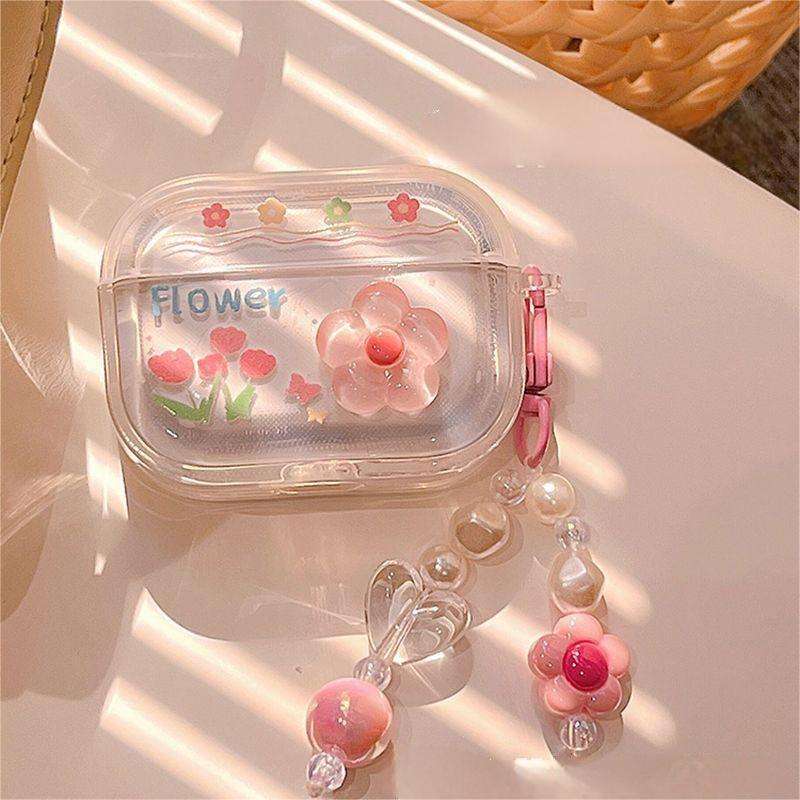 เคสหูฟัง TPU ลายดอกไม้สปริง พร้อมจี้ห้อย กันกระแทก