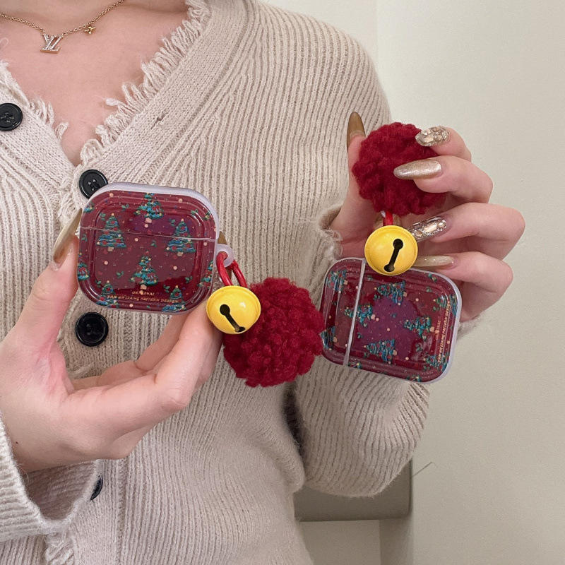 ชื่อสินค้า:เคสหูฟังกันกระแทก TPU ลายต้นคริสต์มาส กระดิ่ง และปอมปอม