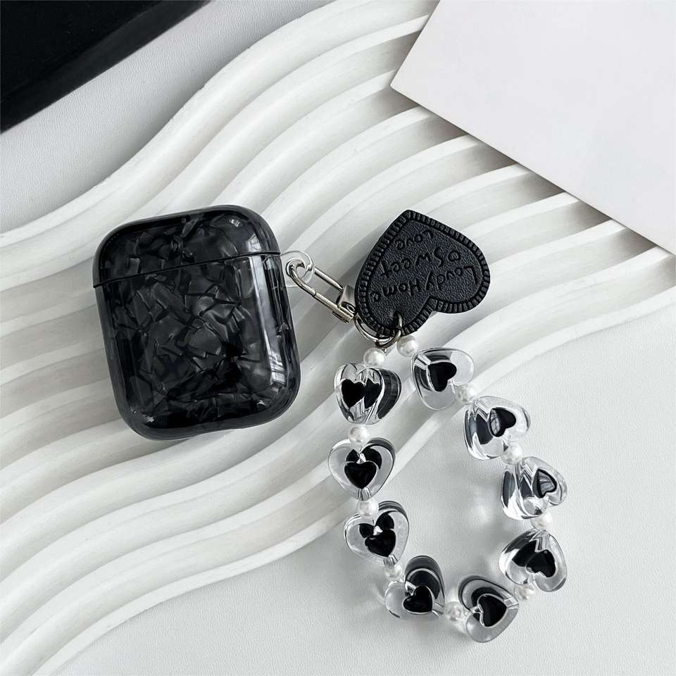 ชื่อสินค้า:เคสหูฟังกันกระแทก TPU สีดำ ลายเปลือกหอย พร้อมพวงกุญแจรูปหัวใจ