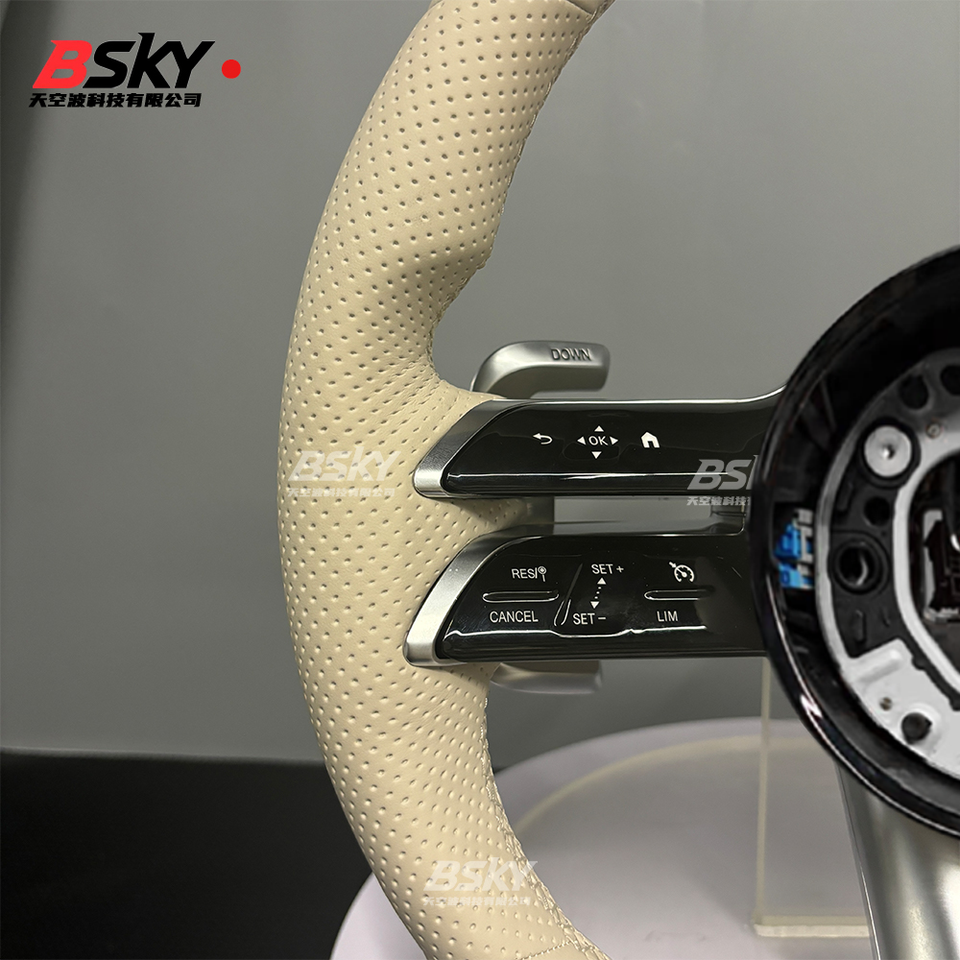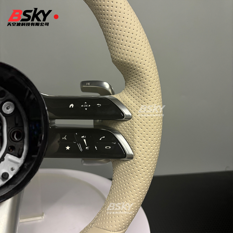 เหมาะสำหรับ Mercedes Benz W176 W205 W222 W212 W463 W464 W205 W44 W204 W218 E63พวงมาลัยหนังแมลงปอสีเบจที่ได้รับการอัพเกรด