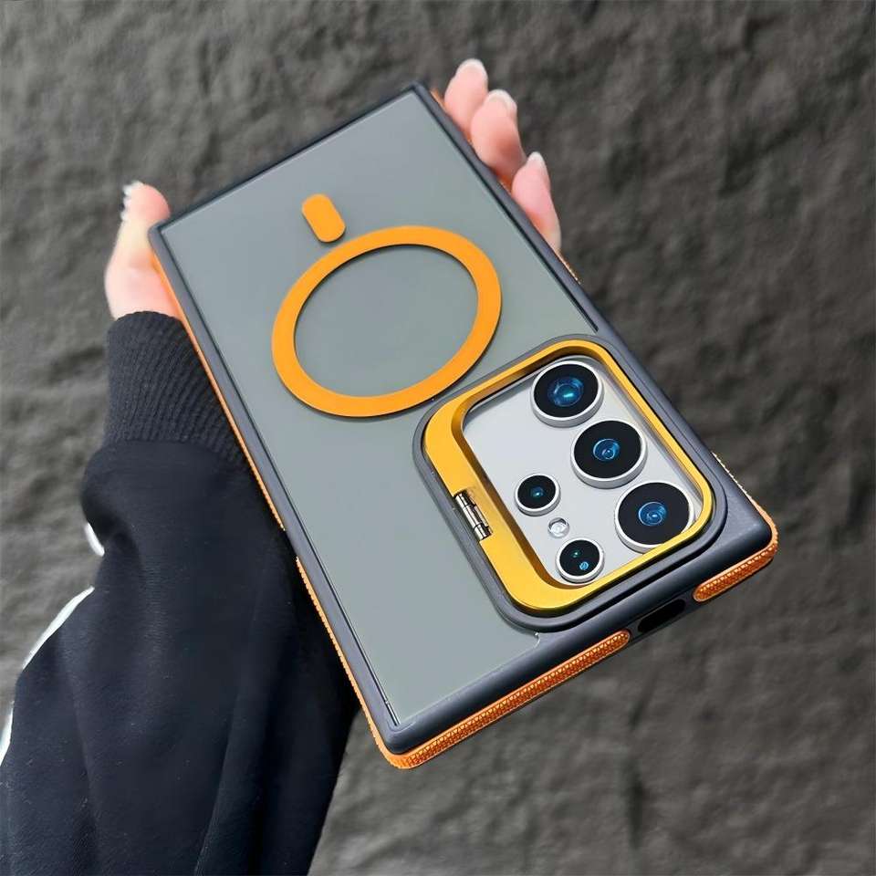 Suitable for Samsung S25 Ultra lens invisible metal bracket phone case, S24 magnetic color-blocking, S23 FE transparent case