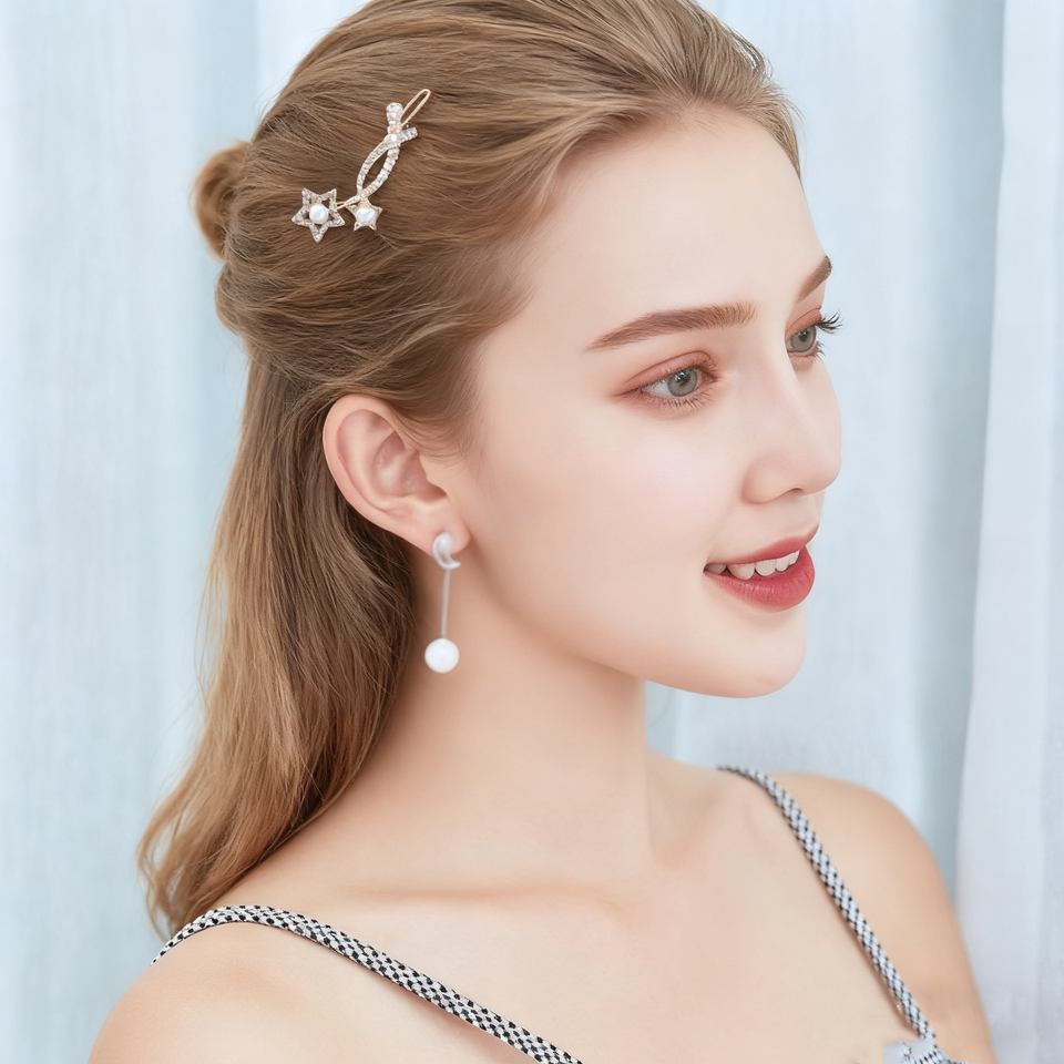 เหมาะสำหรับสวมใส่ในชีวิตประจำวันและงานปาร์ตี้ กิ๊บติดผมโลหะสีทองประดับมุกเล็กและคริสตัลหลากหลายสไตล์