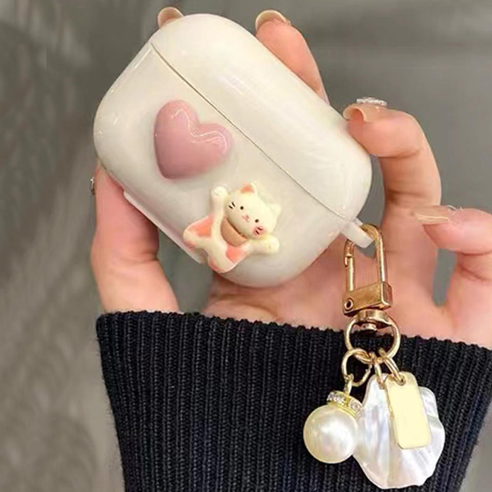 เคสป้องกันหูฟัง airpods Pro แบบรวมทุกอย่างเคสลายหัวใจแมว1/2/3รุ่นน่ารักอิน