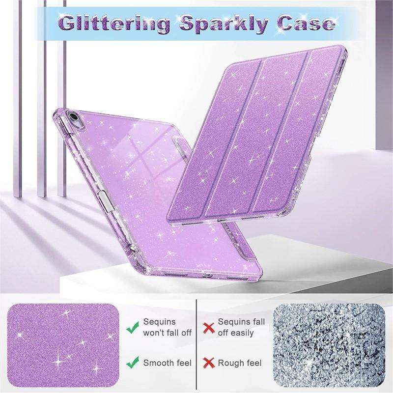 เคสแท็บเล็ตสำหรับ iPad Air 4/5 - 10.9 นิ้ว (ช่องใส่ปากกาด้านขวา) พร้อมฝาปิดแบบพับสามตอนลายกลิตเตอร์ เคสป้องกันแท็บเล็ต