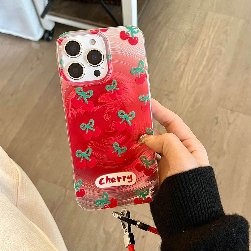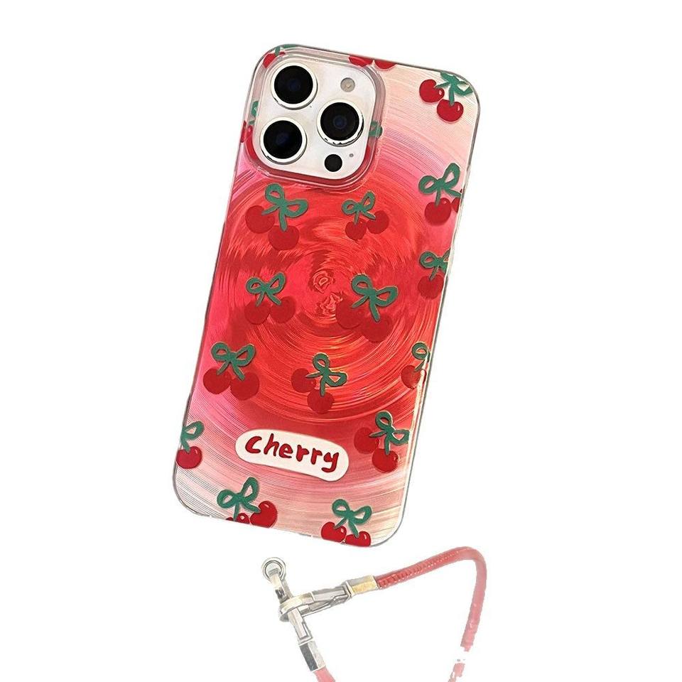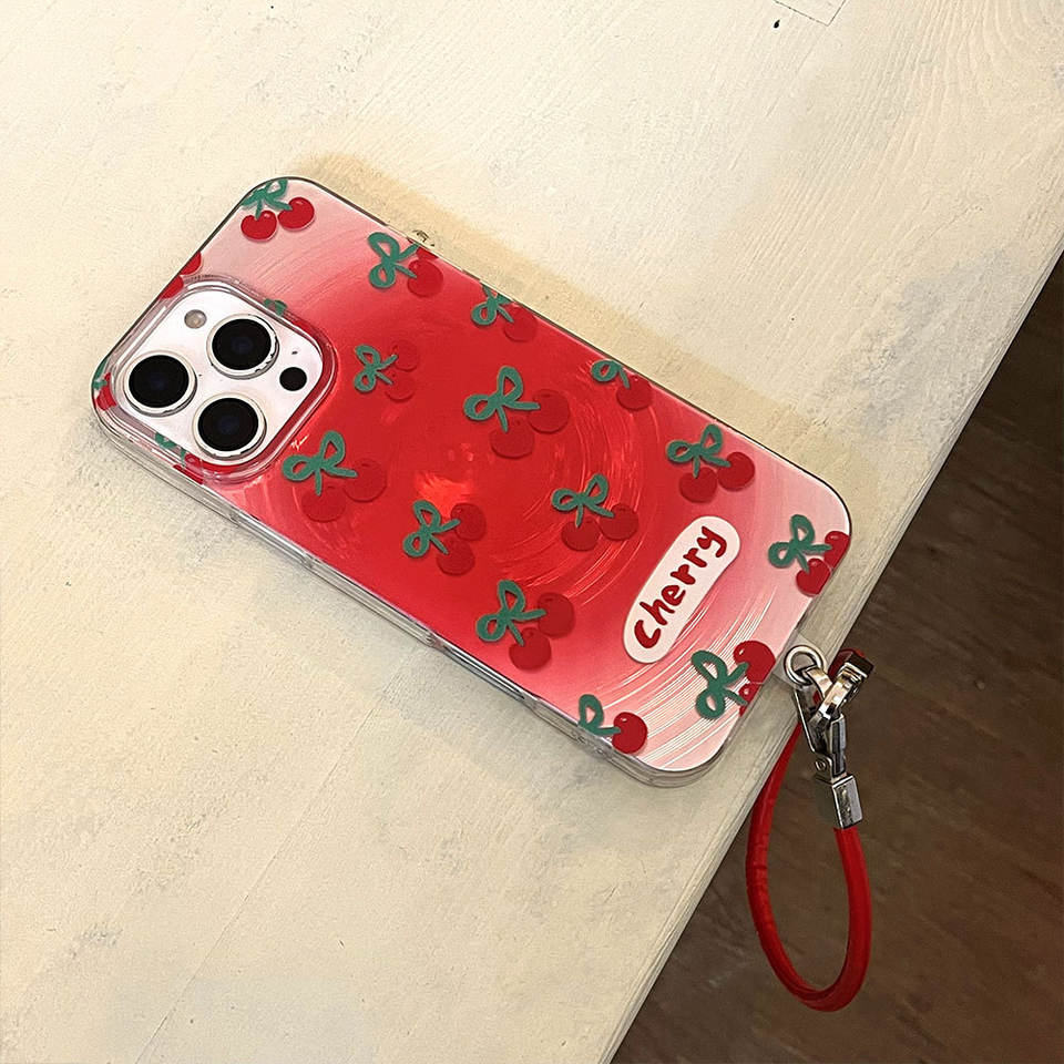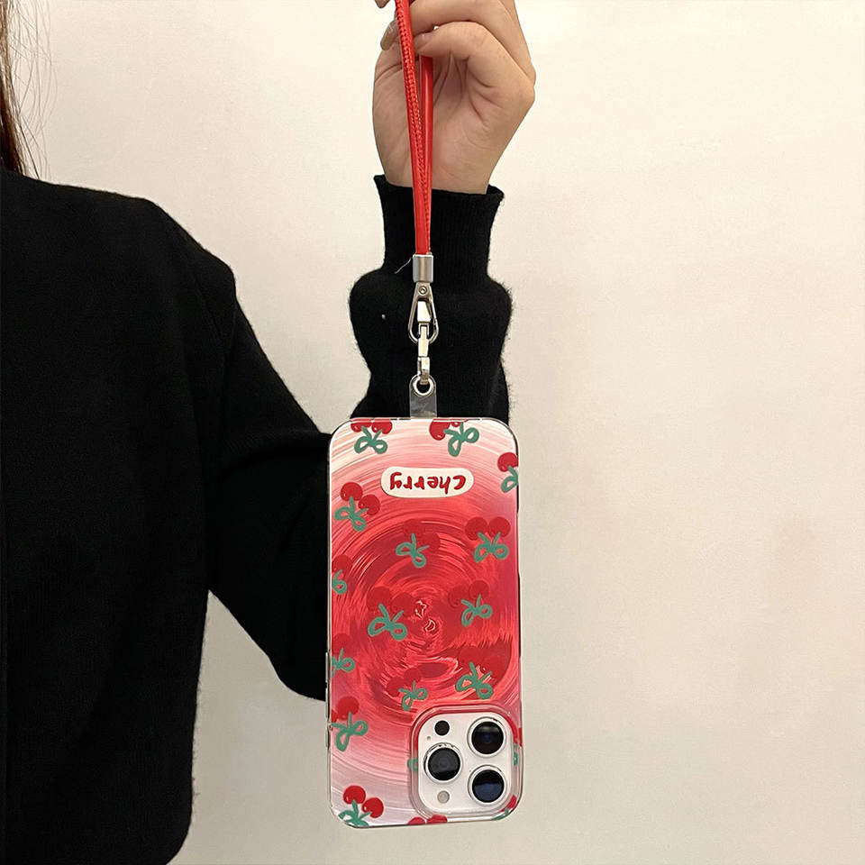 Product name:PC Gradually Red Cherry Premium Anti-Drop Phone Case with Lanyard