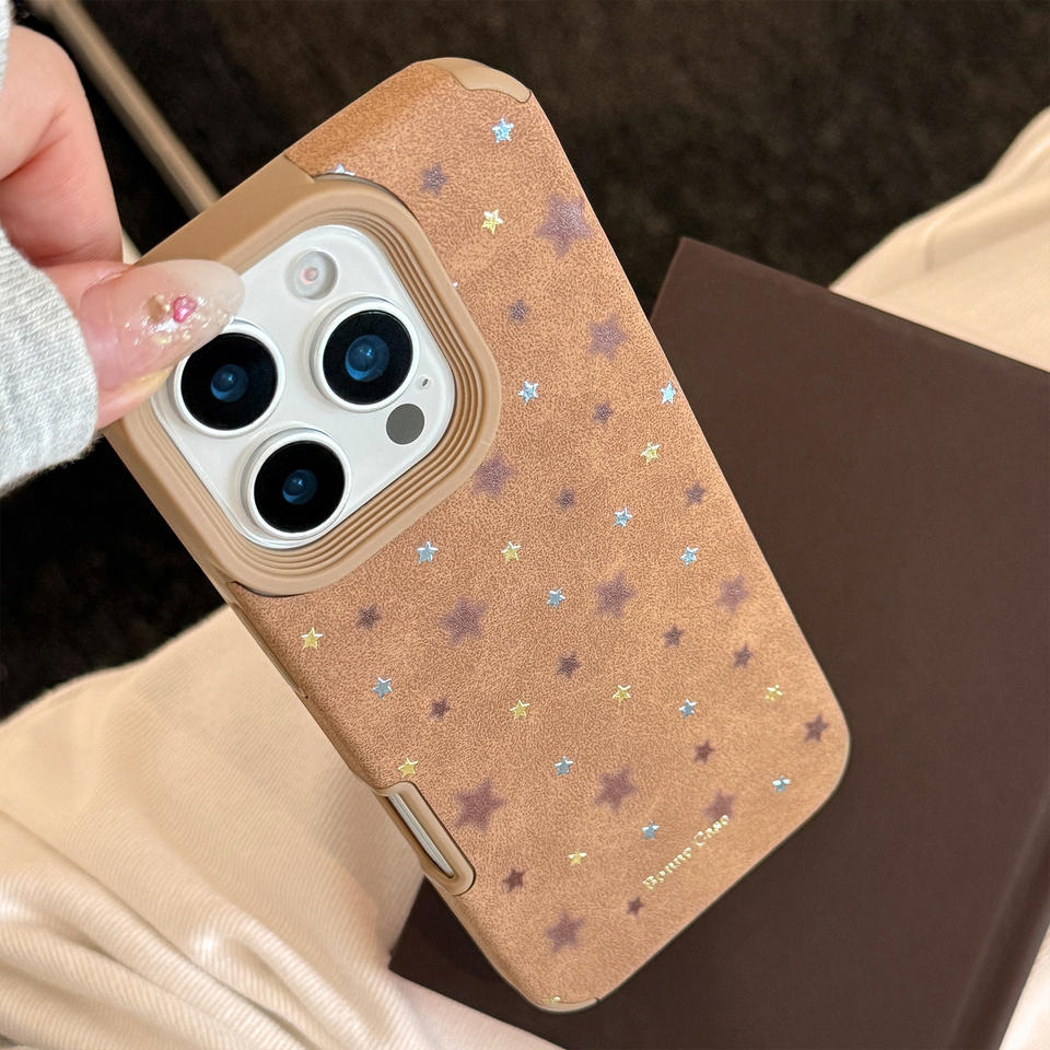 Product name:Faux Leather Brown Gold-Stars Soft Shell Drop-Proof Phone Case