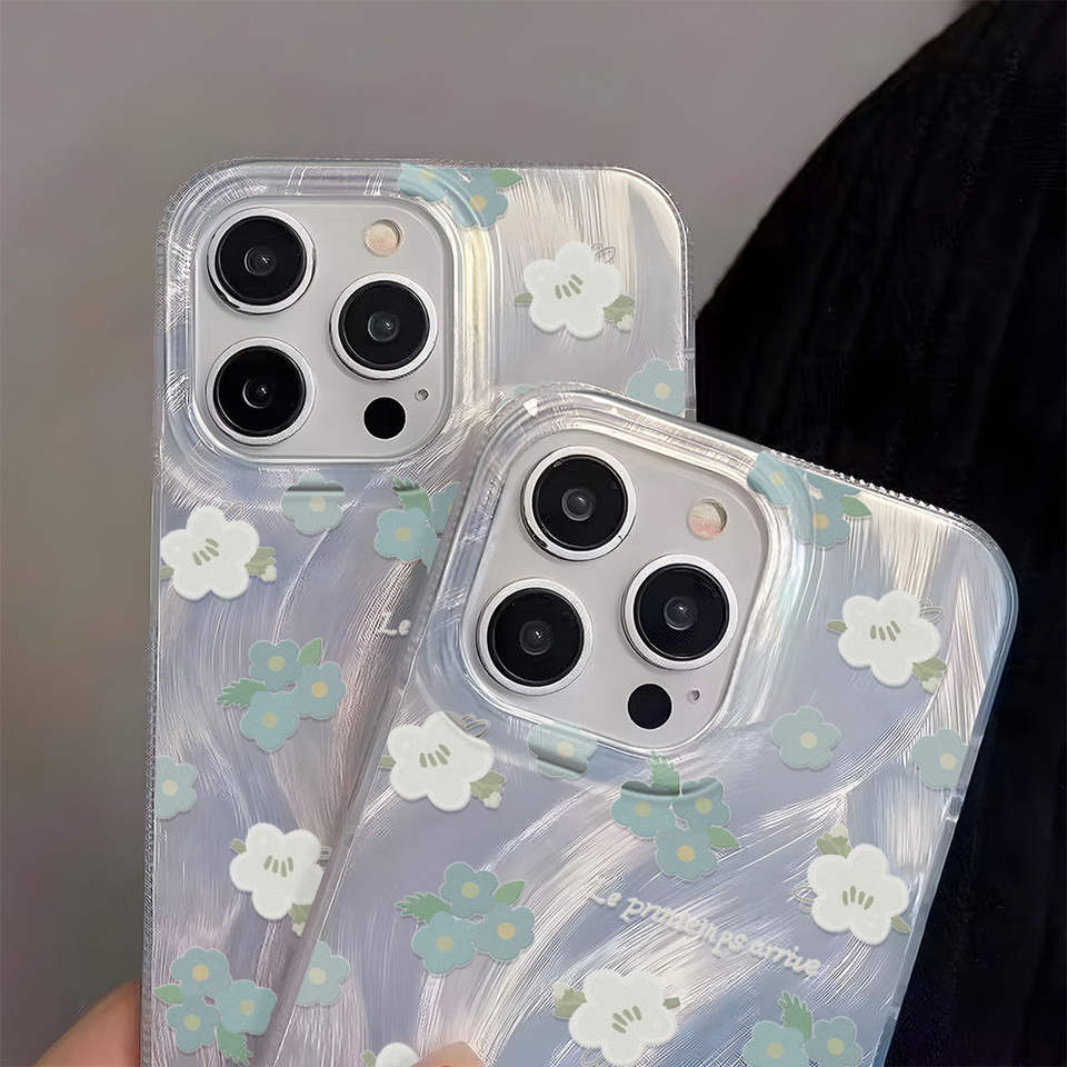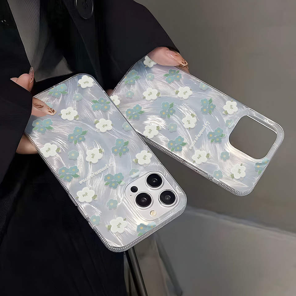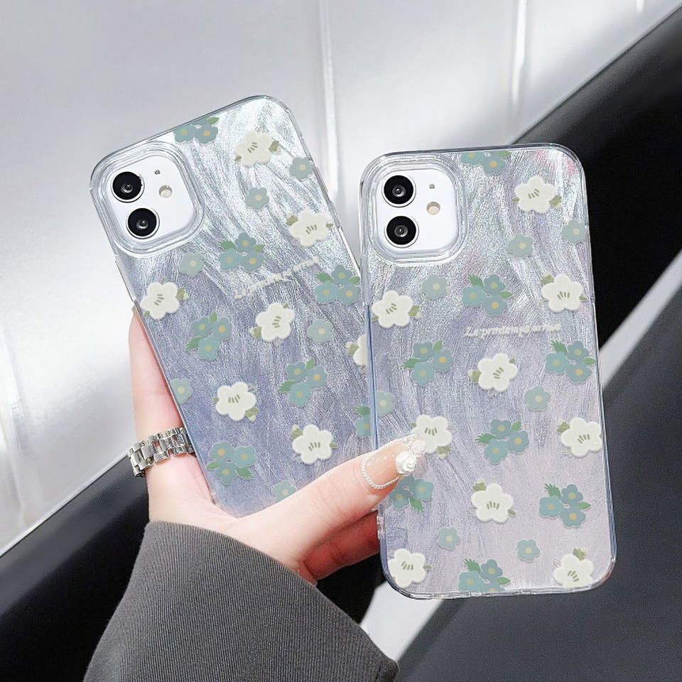 Product name:TPU Fresh Blue Floral Laser Large-Hole Shockproof Phone Case
