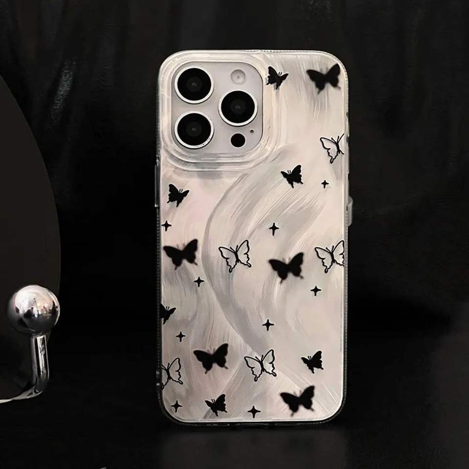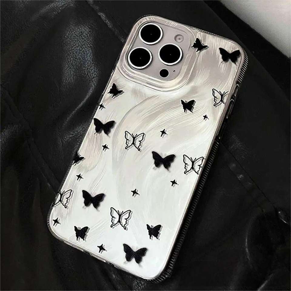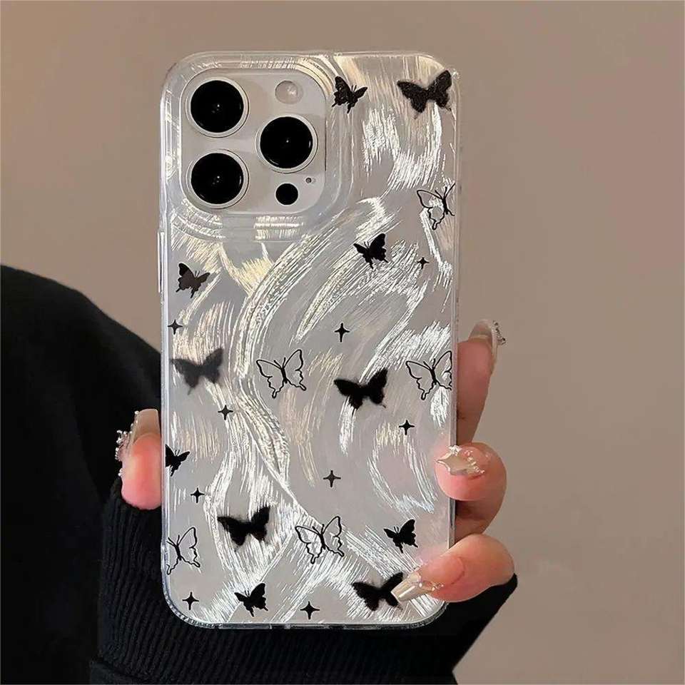 เคสโทรศัพท์ที่เหมาะสำหรับ iPhone 17 Pro Max, เคสโทรศัพท์กันกระแทกและกันตกแบบเลเซอร์ระดับไฮเอนด์ ลายผีเสื้อสีดำ รูขนาดใหญ่