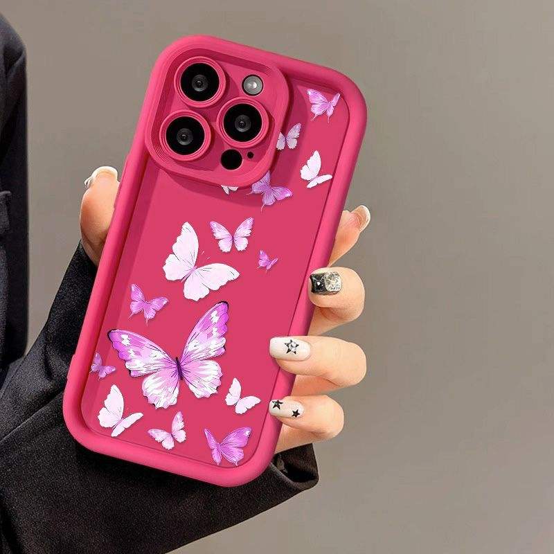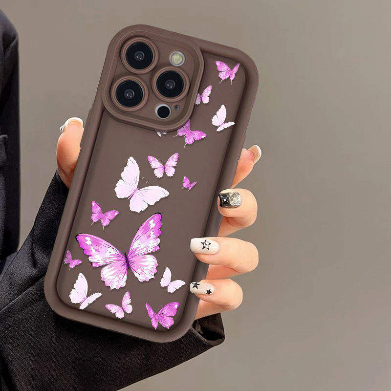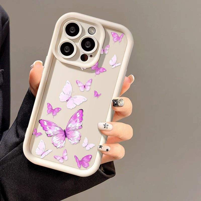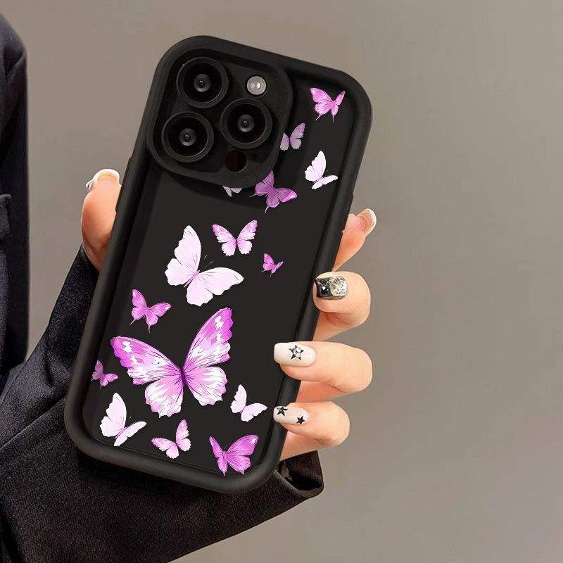 ชื่อสินค้า:เคสโทรศัพท์กันกระแทก TPU พรีเมียม สีม่วงด้าน ลายผีเสื้อ ครอบคลุมเต็มตัว