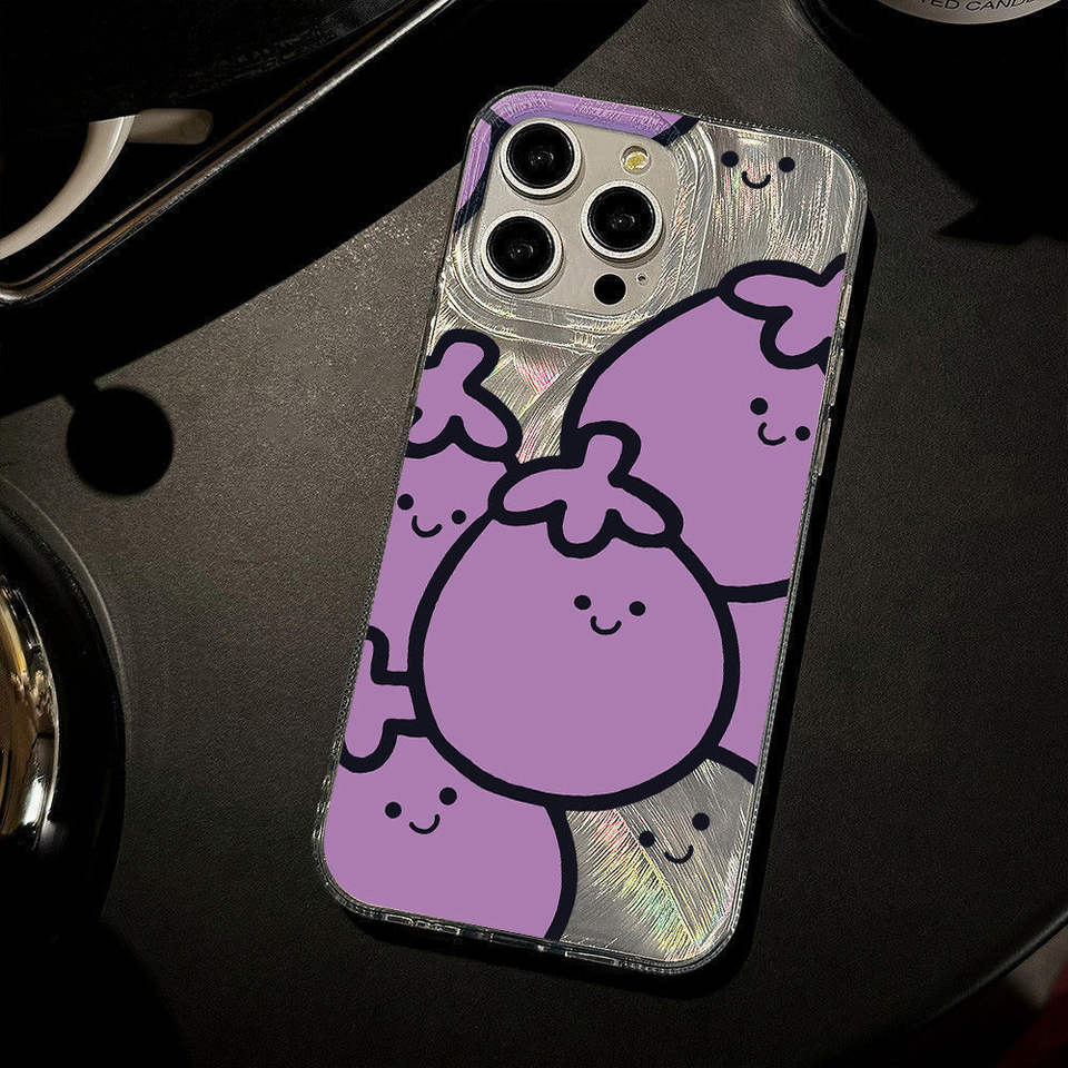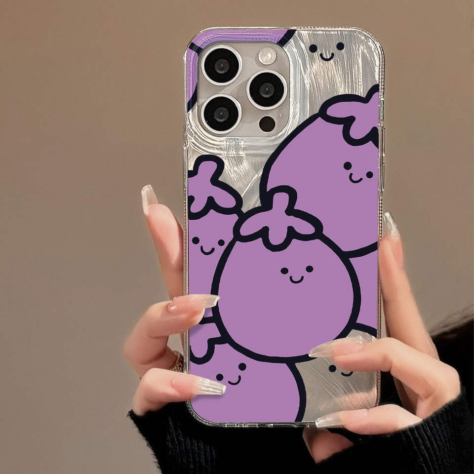เคสโทรศัพท์ TPU ลายมะเขือม่วงน่ารัก ตาข่ายระบายอากาศ รูใหญ่ กันกระแทก