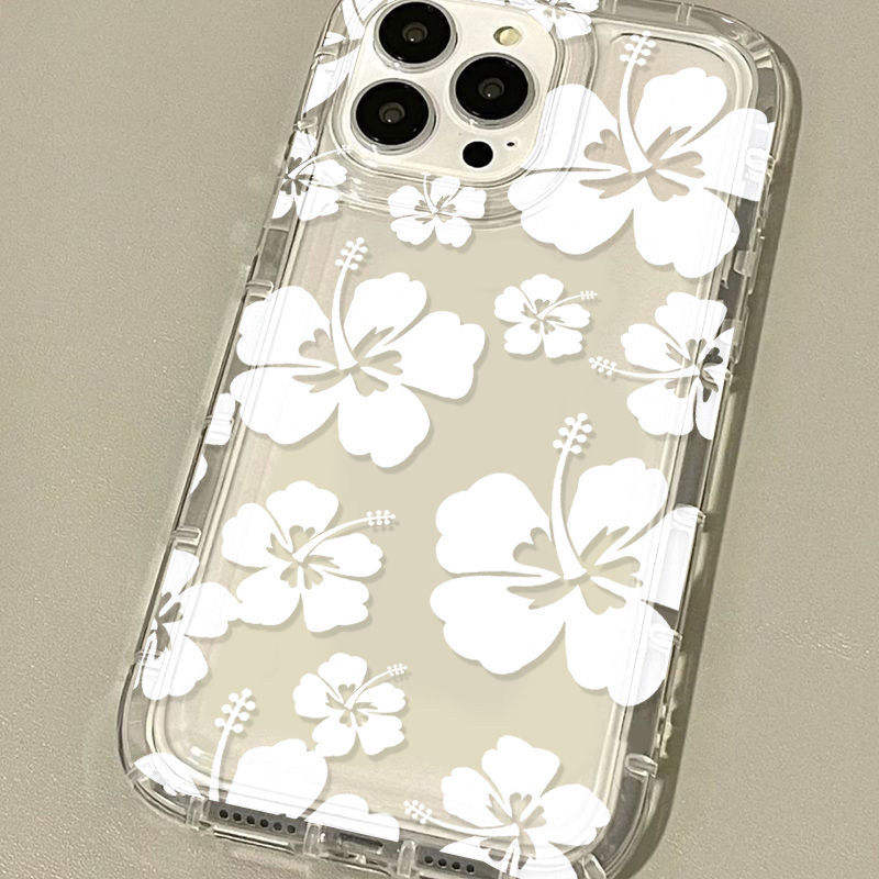 เคสโทรศัพท์ TPU สีขาวลายดอกไม้ใหญ่ กันกระแทก ครอบคลุมเต็มรูปแบบ