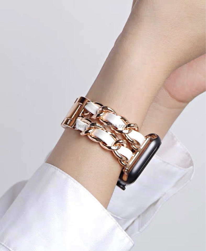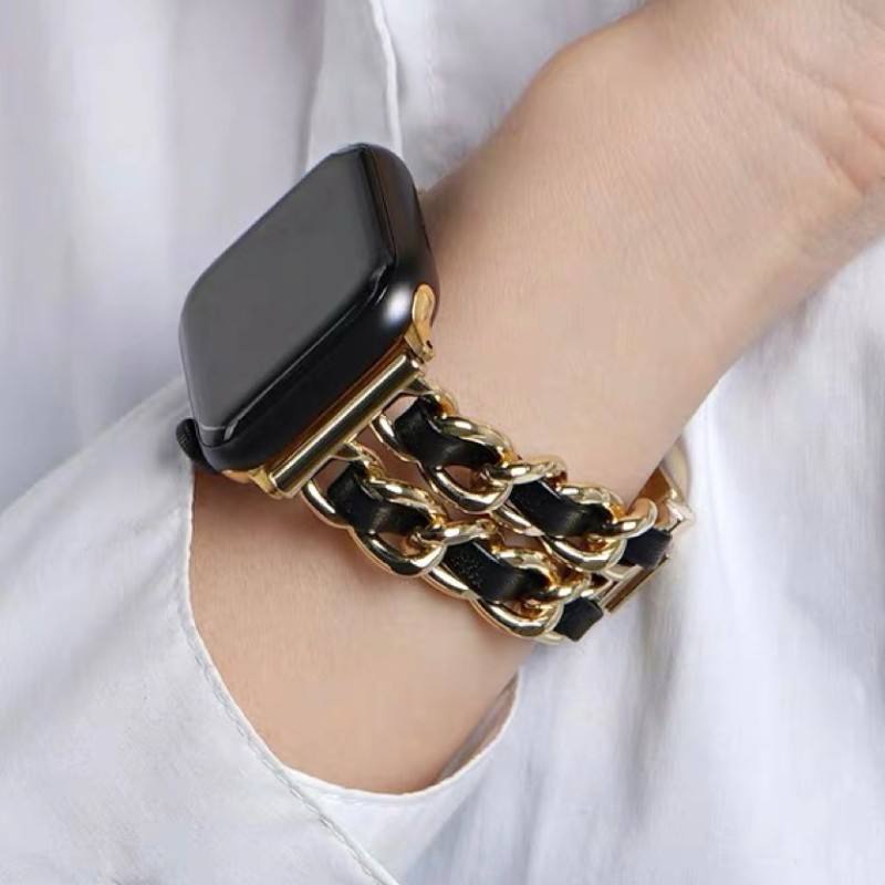 เหมาะสําหรับ iWatch Apple Watch รุ่นที่ 8 ใหม่หนังหอมขนาดเล็กแถวคู่โซ่ยีนส์สายโลหะ