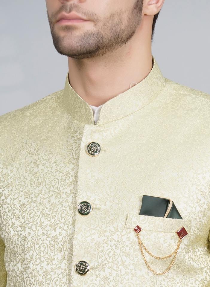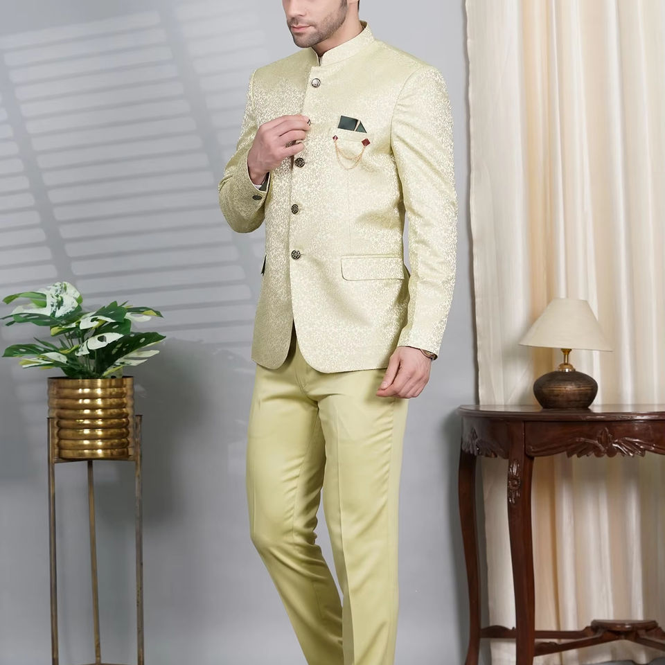 Zed Club 2-Piece Designer Printed Polyester Suit Regular Fit Stand Collar Breathable Flat Front Style Button Fly Long Party Men