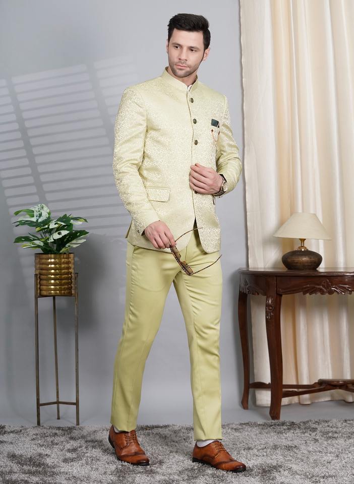 Zed Club 2ชิ้นชุดสูทผ้าไหมพิมพ์ลายดีไซน์ปกคอตั้งทรงพอดีตัวปกติพร้อมกระดุมกางเกงยาวระบายอากาศได้ดีสำหรับงานปาร์ตี้