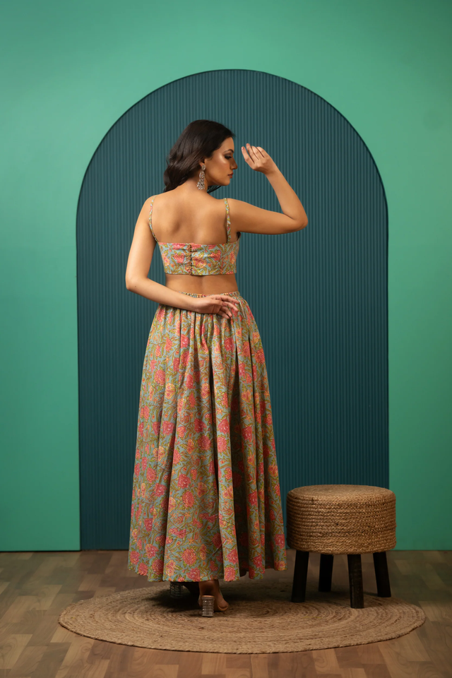 ชุดเซ็ตพิมพ์ลายดอกไม้ฤดูร้อนสุดน่ารักพร้อมเสื้อครอปแต่งระบาย | น้ำหนักเบา สวมใส่สบาย ทันสมัย เหมาะสำหรับผู้หญิงใส่ทุกวัน