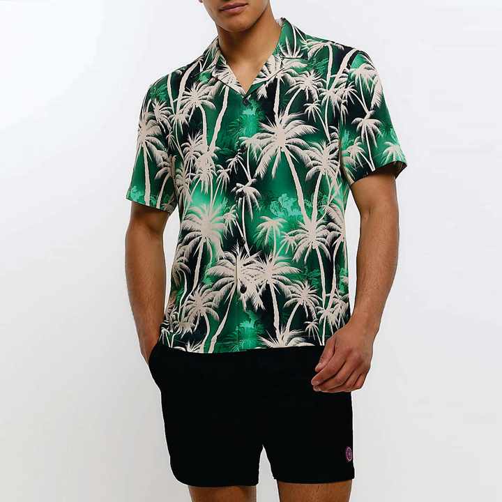 ชุดสองชิ้นเสื้อวันหยุดแฟชั่นผู้ชายพิมพ์ลายชายหาดฮาวาย2023ฤดูร้อน