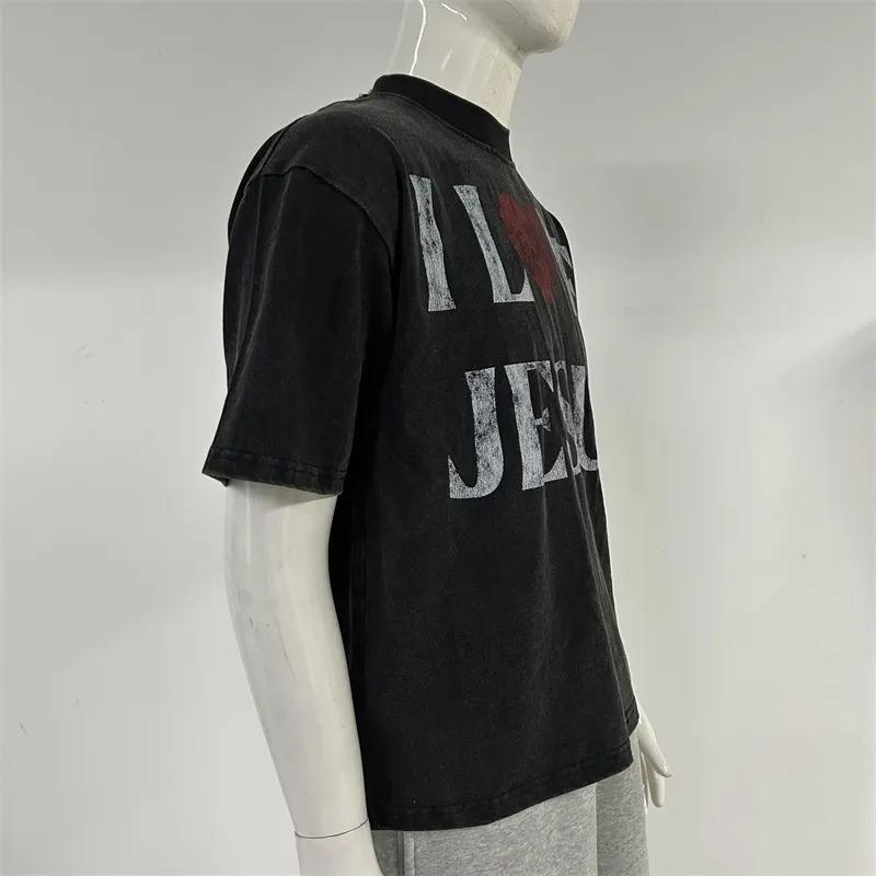 เสื้อยืดผู้ชายทรงโอเวอร์ไซส์ แขนเสื้อแบบดรอปโชว์เดอร์ ตัดเย็บแบบครอป พิมพ์ลายดิจิตอลสไตล์วินเทจ ล้างสีแบบแอซิดวอช พร้อมโลโก้สั่งทำพิเศษ สำหรับฤดูร้อนปี 2024 ผลิตจากผ้าฝ้าย 100%
