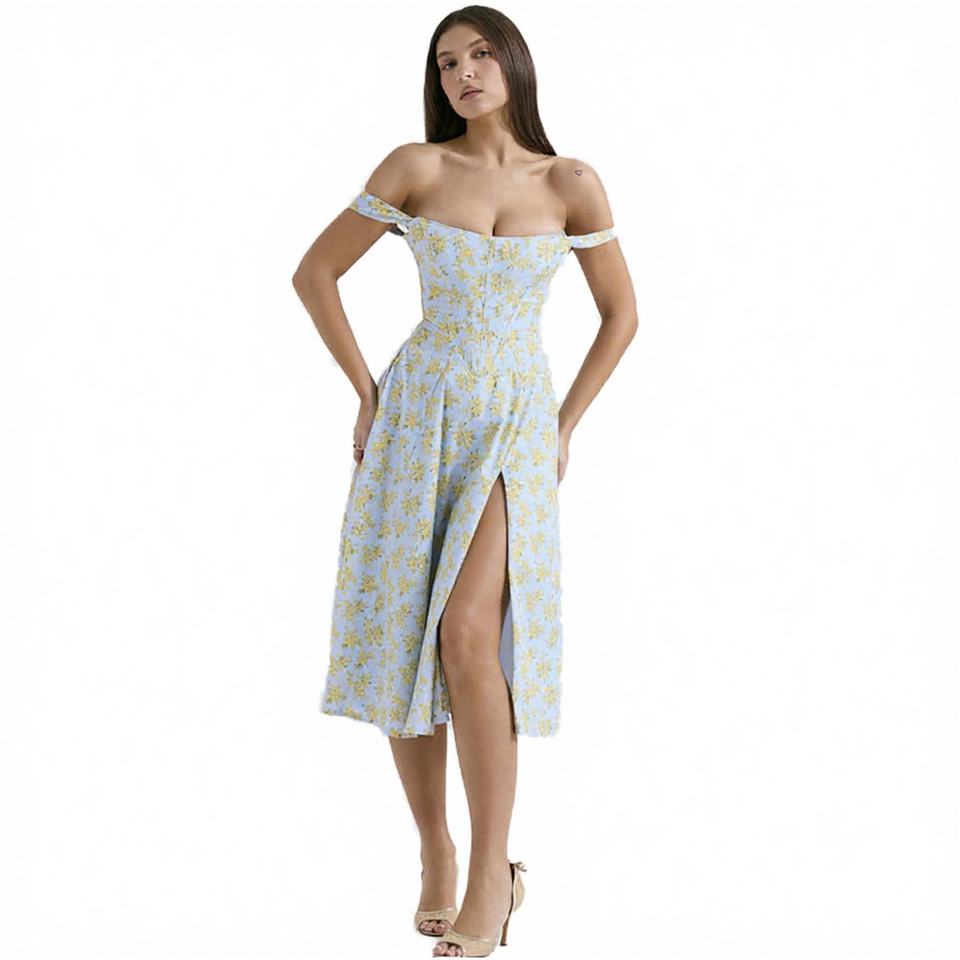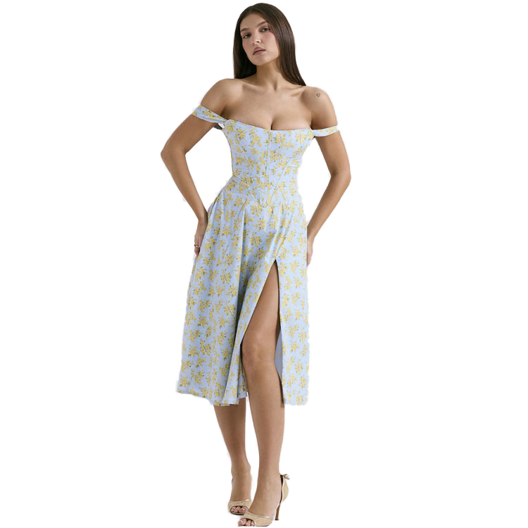 เดรสยาวปานกลางลายดอกไม้พิมพ์ลายสไตล์ฝรั่งเศสใหม่ประจำฤดูร้อนปี 2024 ดีไซน์เก๋ไก๋แบบผ่าข้าง เซ็กซี่ ใส่สบาย ระบายอากาศได้ดี ซักทำความสะอาดได้ เหมาะสำหรับใส่ลำลองหรือใส่ไปเที่ยว