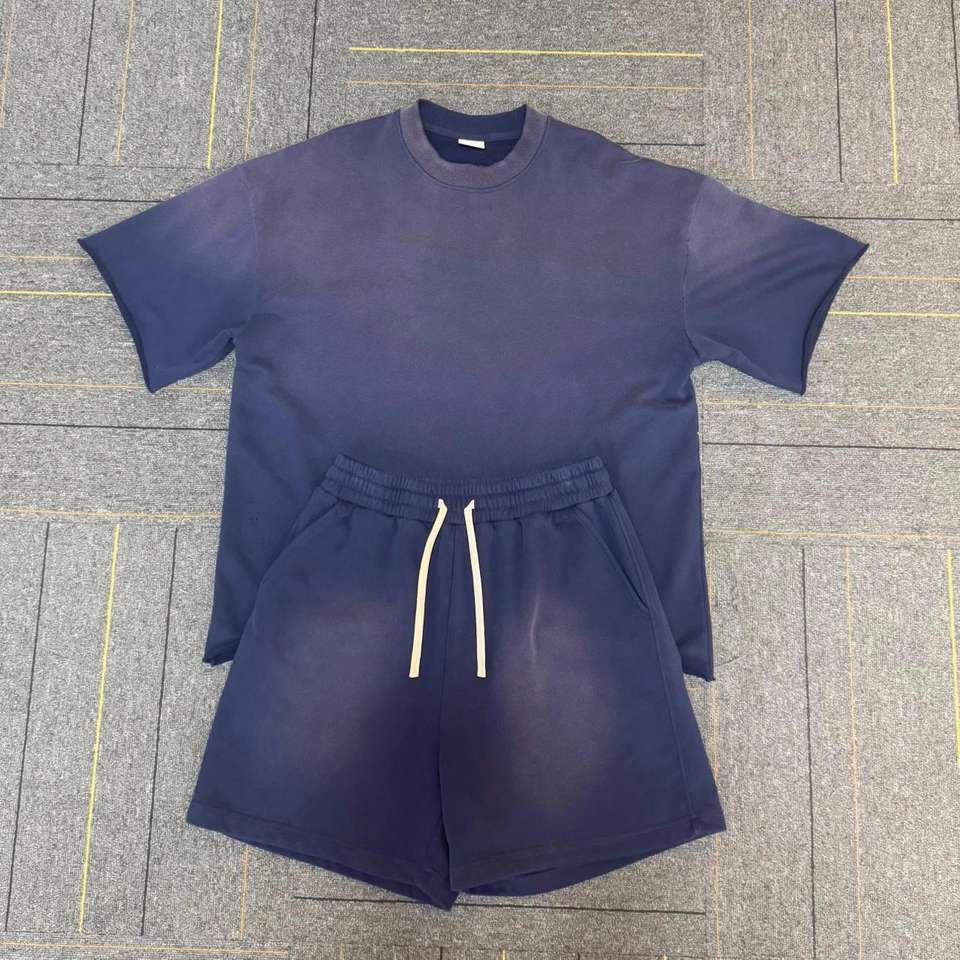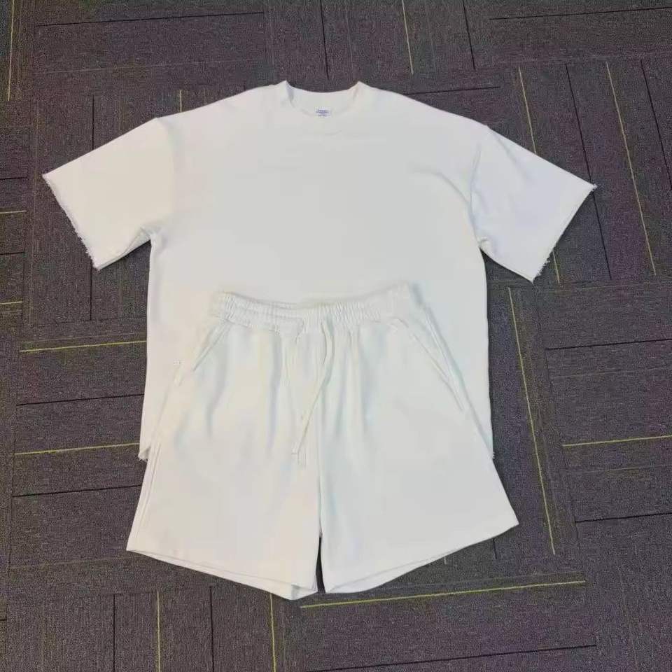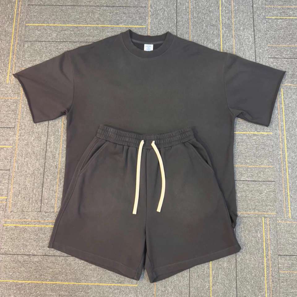 ชุดเสื้อยืดและกางเกงขาสั้นผู้ชาย ผ้าโพลีเอสเตอร์/คอตตอน 260 กรัม ปักลายเรียบง่าย ระบายอากาศได้ดี สไตล์วินเทจ สตรีทแวร์ ทรงหลวม โอเวอร์ไซส์ สำหรับฤดูร้อน