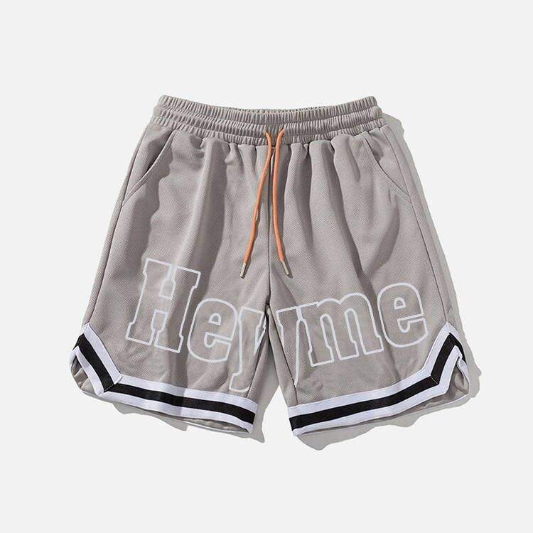 กางเกงขาสั้นตาข่ายโพลีเอสเตอร์100% เล่นกีฬาฤดูร้อนเอวปานกลางแห้งเร็วลายพื้นสำหรับกีฬาวิ่งยิมบาสเก็ตบอลลำลอง