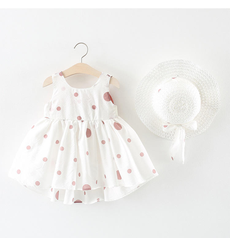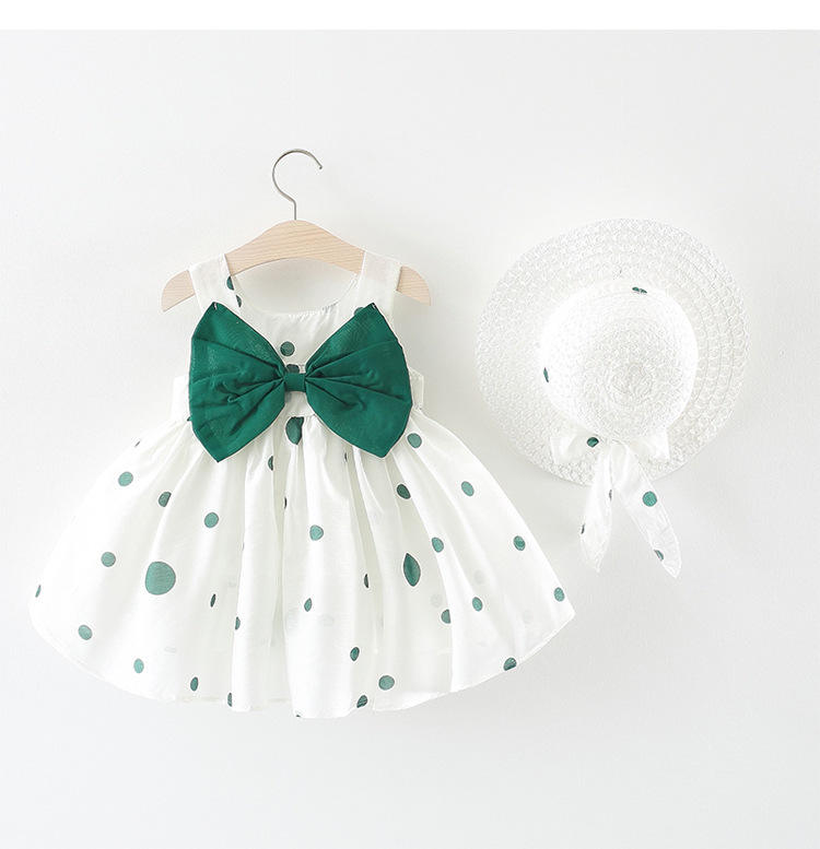 ชุดเดรสเด็กผู้หญิงลายจุดน่ารักสำหรับฤดูร้อน แขนกุด แต่งโบว์ ผ้าฝ้าย สไตล์เจ้าหญิง