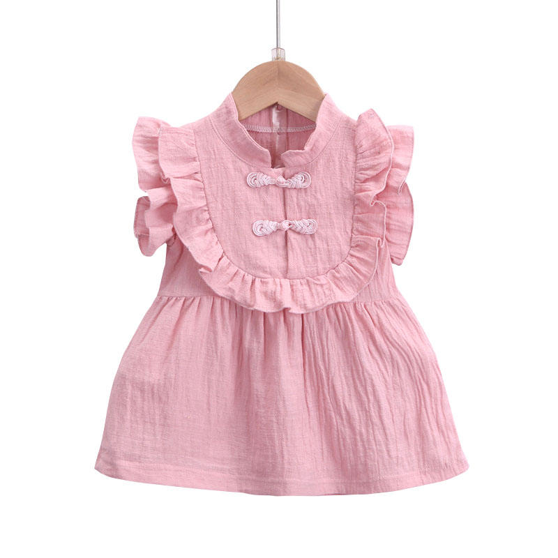 ชุดเดรสเด็กผู้หญิงสไตล์ชาติพันธุ์แบบไม่มีแขนสำหรับฤดูร้อน พร้อมกระโปรงผูกโบว์