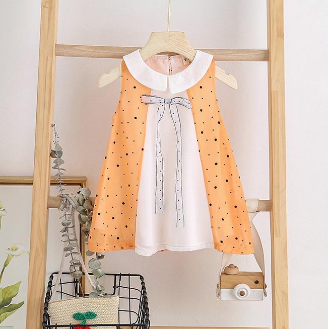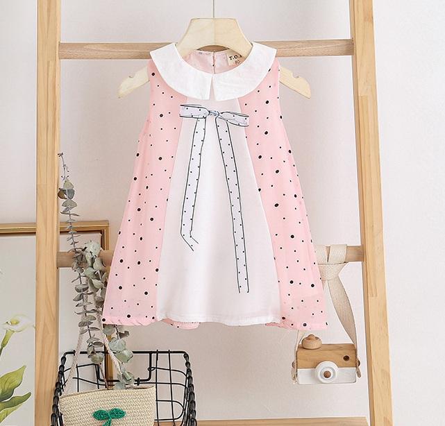 ฤดูร้อนเด็กผู้หญิงชีฟองเกาหลีลายจุดคอเต่าแฟชั่นขายร้อนชุดเจ้าหญิงแสนหวาน
