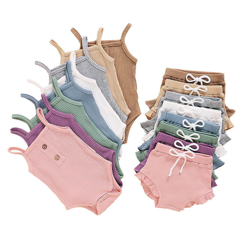 ชุดเสื้อผ้าเด็กผู้หญิงสำหรับฤดูร้อน ขนาด 70-100 ซม. แบบไม่มีแขน ผ้าฝ้าย 100% ชุด 2 ชิ้น สีพื้น ระบายอากาศได้ดี สวมใส่สบาย