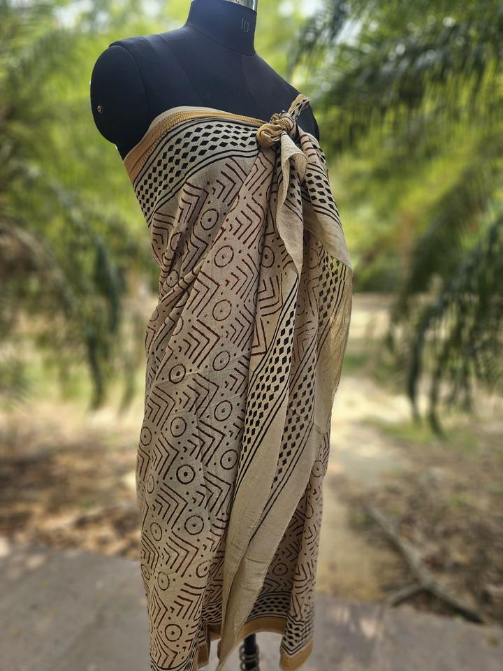 Summer Beach Pareo Handmade Women Cotton Indian Hand Block Print Sarong Hand Cotton Scarf with Bagru Print Unique Gift for Her