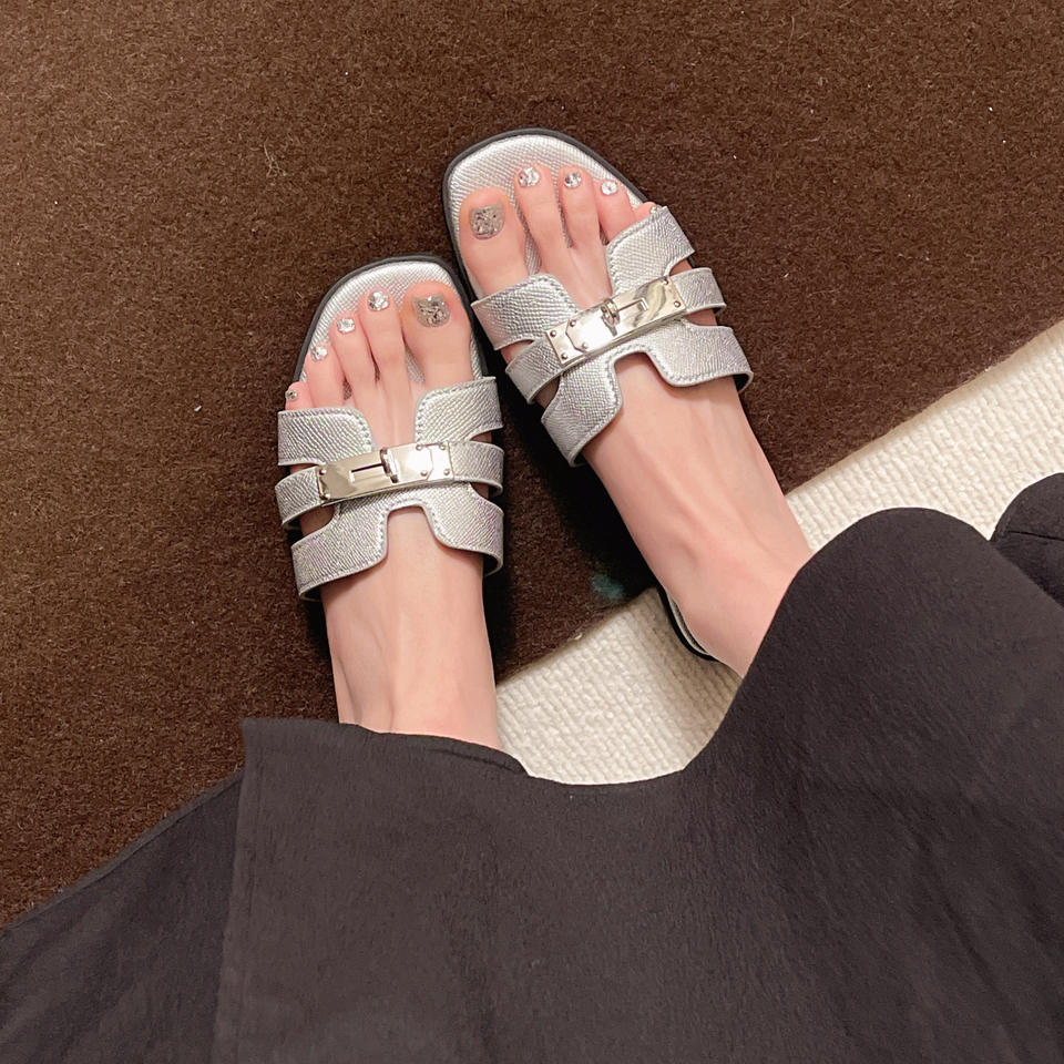 รองเท้าแตะหนังแท้แบบเปิดส้นหนา สไตล์อเมริกันสำหรับฤดูร้อน เหมาะกับชายหาด ใช้งานได้หลากหลาย ใส่สบายตลอดปี สำหรับผู้หญิง