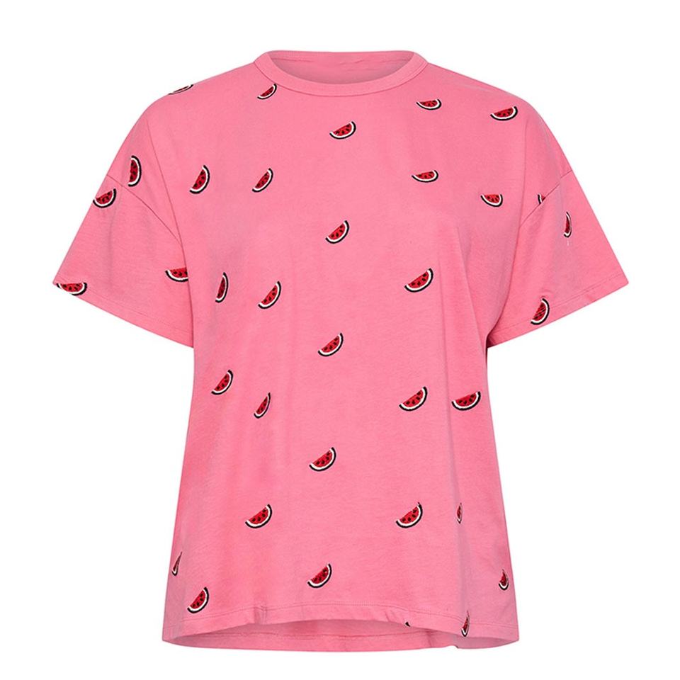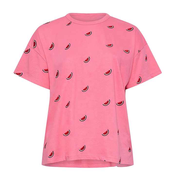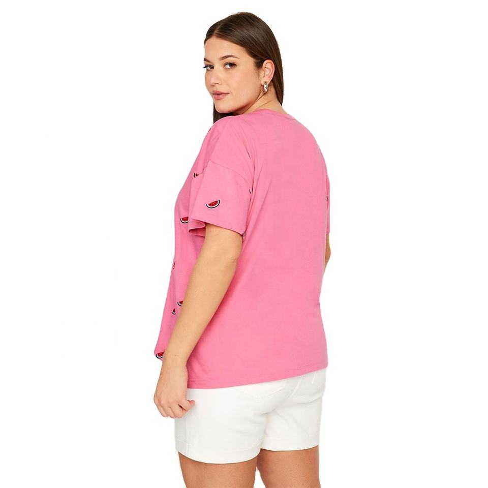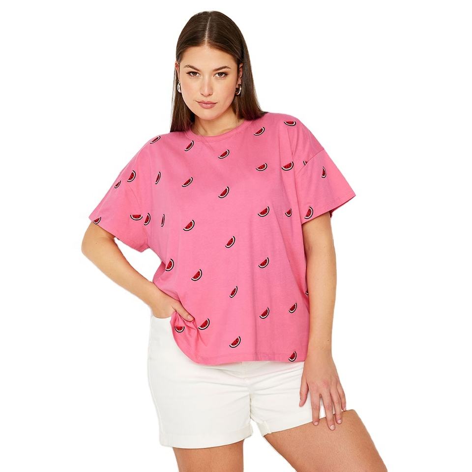 เสื้อยืดพิมพ์ลายสำหรับผู้หญิงเสื้อยืดแขนสั้นผ้าฝ้ายสีชมพูลำลองเสื้อผ้าแนวสตรีท