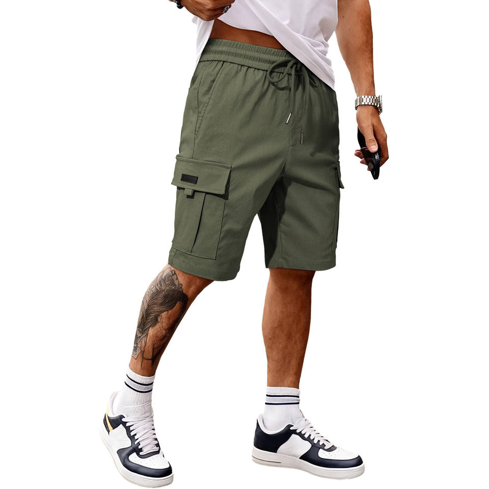 กางเกงขาสั้นลำลองชายหาดฤดูร้อนขายส่ง กางเกงจ็อกเกอร์คาร์โก้แบบเรียบ กางเกงขาสั้นออกกำลังกายผ้าฝ้ายสีพื้นมีกระเป๋าสำหรับผู้ชาย