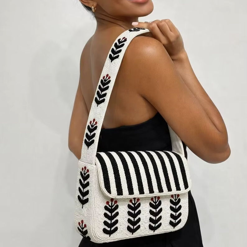 กระเป๋าถือลูกปัดสำหรับฤดูร้อน กระเป๋าชายหาดสำหรับผู้หญิง กระเป๋าถือสานทำมือ กระเป๋าของขวัญปักลาย กระเป๋าสะพายข้าง