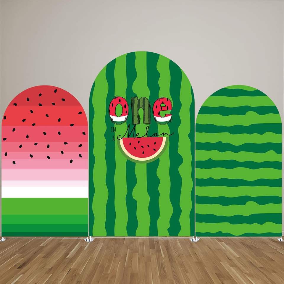 ของตกแต่งปาร์ตี้วันเกิดฤดูร้อนฉากหลังทรงโค้งรูปแตงโมสแปนเด็กซ์ผ้ายืดสำหรับตกแต่งแบบไม่เหมือนใคร