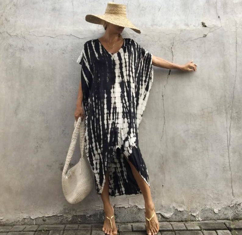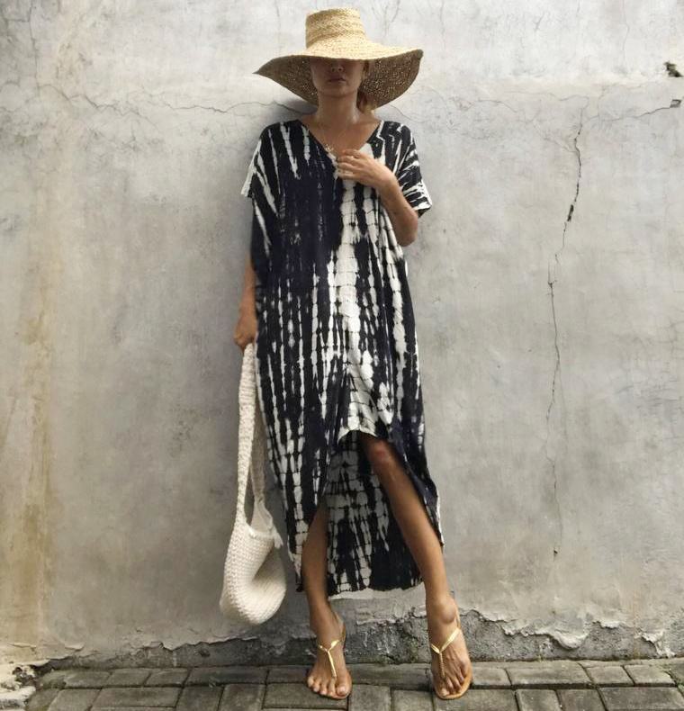 ชุดเดรสมัดย้อมโบโฮสำหรับผู้หญิง,ชุดเรยอนผ้าบาติกชุดเดรสชายหาดสำหรับฤดูร้อน