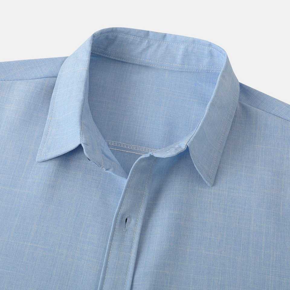 เสื้อเชิ้ตผู้ชายแขนยาวผ้าลินินผสมฝ้ายซาตินเนื้อนุ่มระบายอากาศดี ยับยาก สีพื้น สำหรับฤดูร้อน