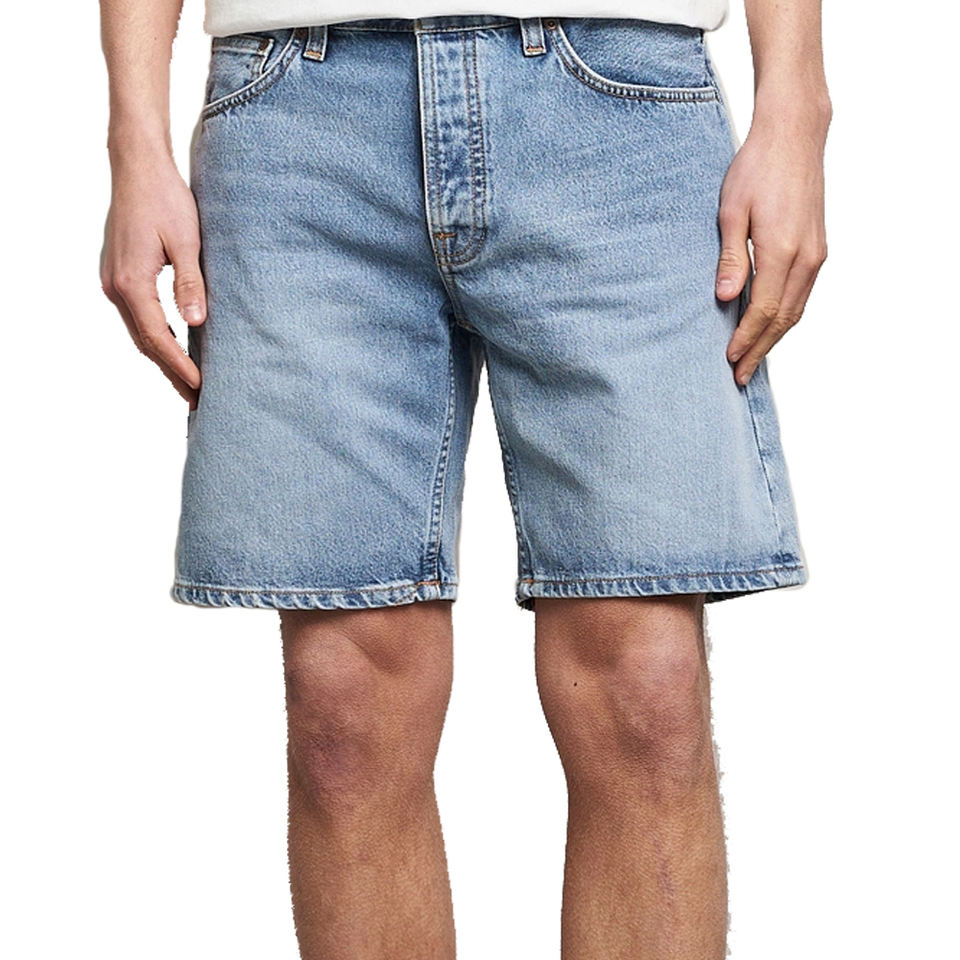 กางเกงยีนส์ขาสั้นทรงตรงเอวกลาง ระบายอากาศได้ดี เหมาะสำหรับฤดูร้อน ผ้าฝ้ายถัก 100% ติดกระดุม