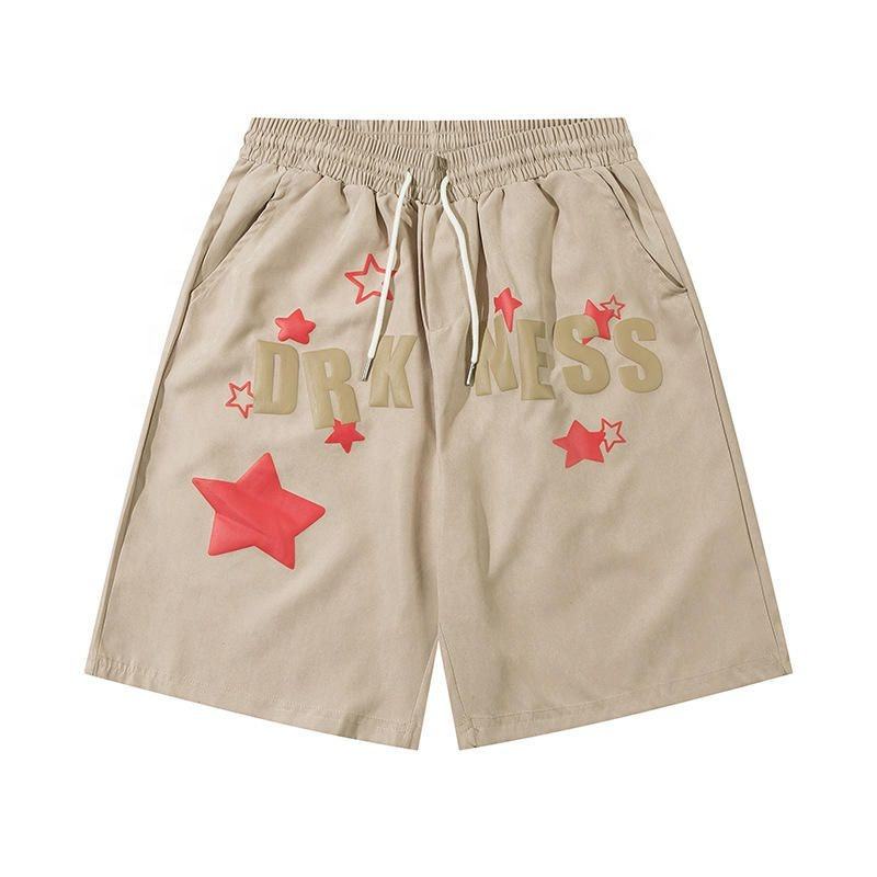 กางเกงขาสั้นระบายอากาศสำหรับผู้ชายกางเกงขาสั้นแนวสตรีทแบบมีเชือกผูกปักลายสำหรับฤดูร้อน