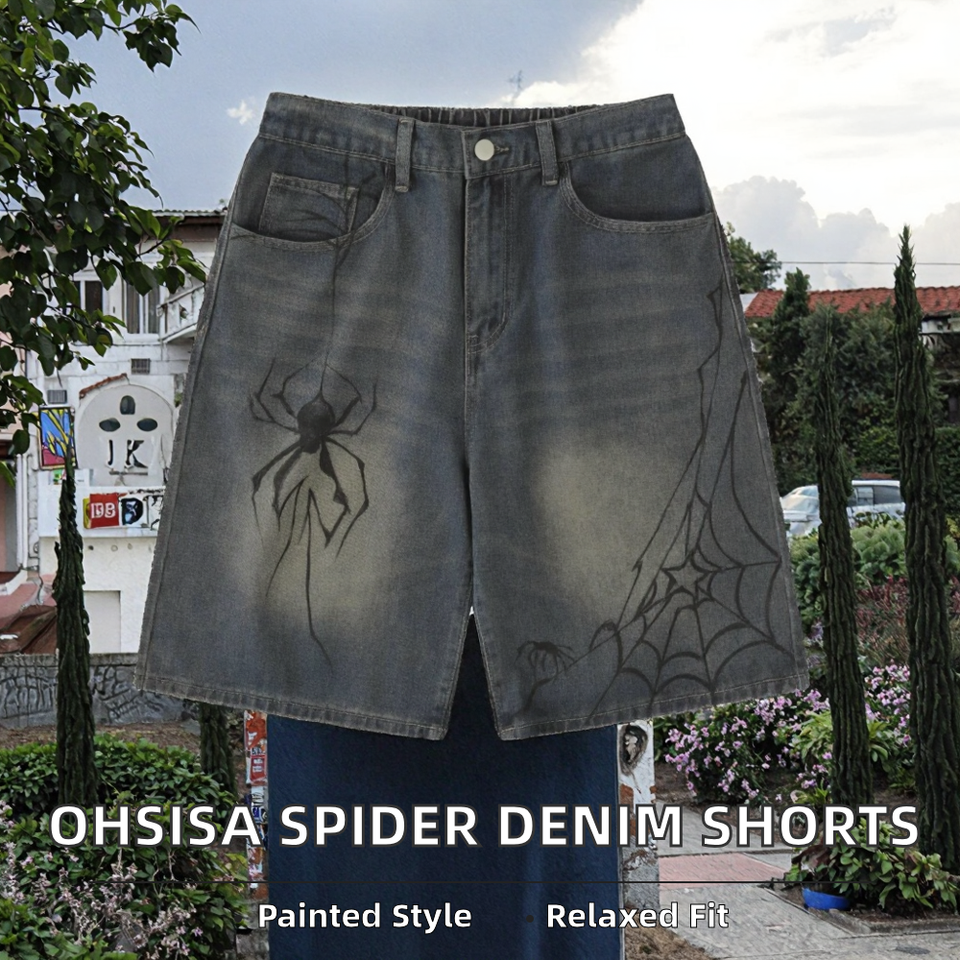 กางเกงยีนส์ขาสั้นทรงตรงสไตล์ฮิปฮอปสำหรับผู้ชาย สีน้ำเงินฟอกแบบวินเทจ ระบายอากาศได้ดี เหมาะสำหรับฤดูร้อน ทรงหลวม ยอดนิยม