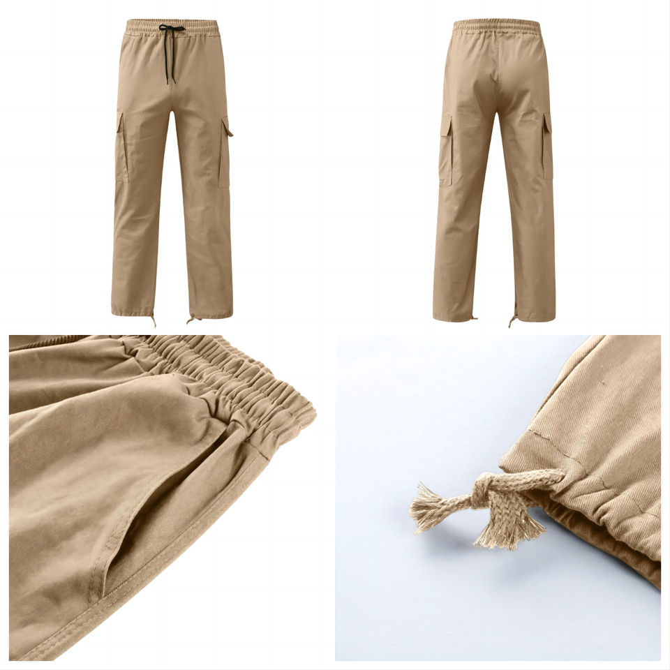 กางเกงขาตรงขาทรงแบ็กกี้ขาตรงผ้าไนลอนสำหรับผู้ชายกางเกงใส่สบายมีหลายกระเป๋าสำหรับฤดูร้อน