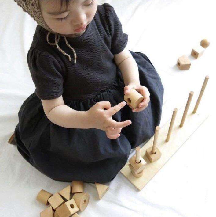 Summer Casual Cotton Linen Solid Color Short Sleeve Kids Casual Dresses for Girls