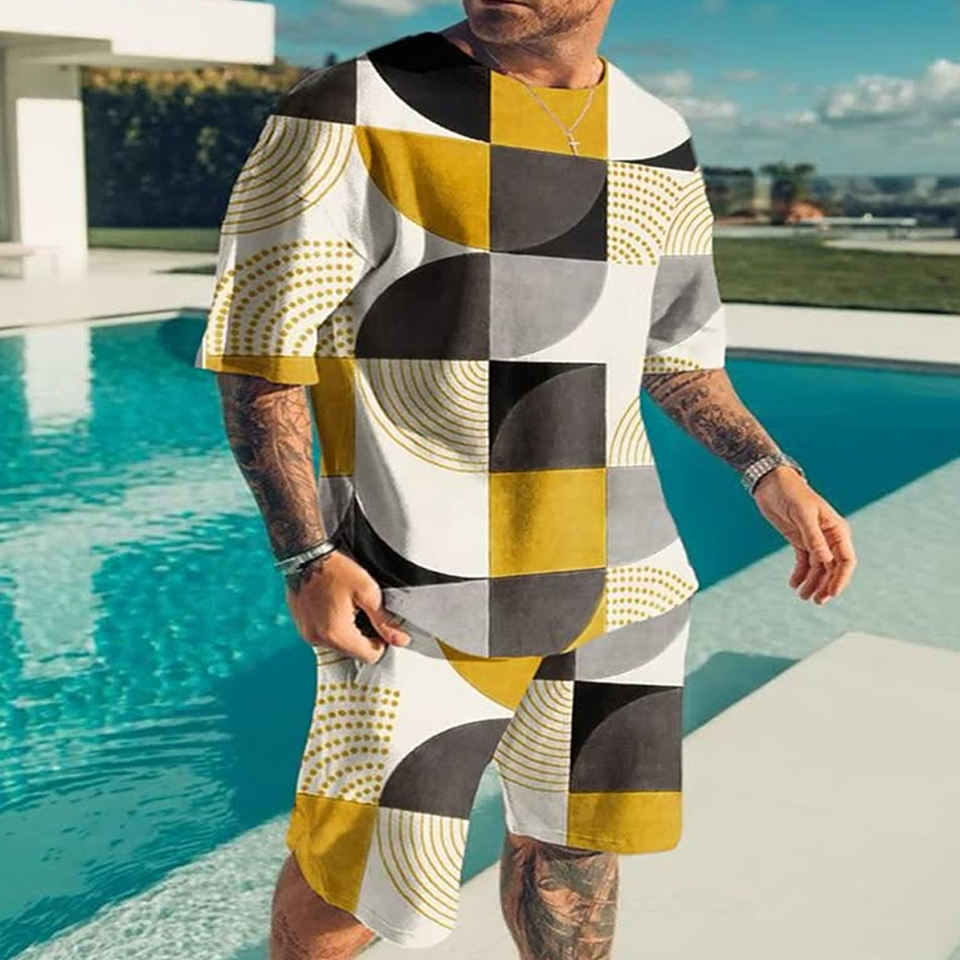 Summer Casual Men's Fashion Print Short Sleeve Shorts Sports Suit Two-piece Set