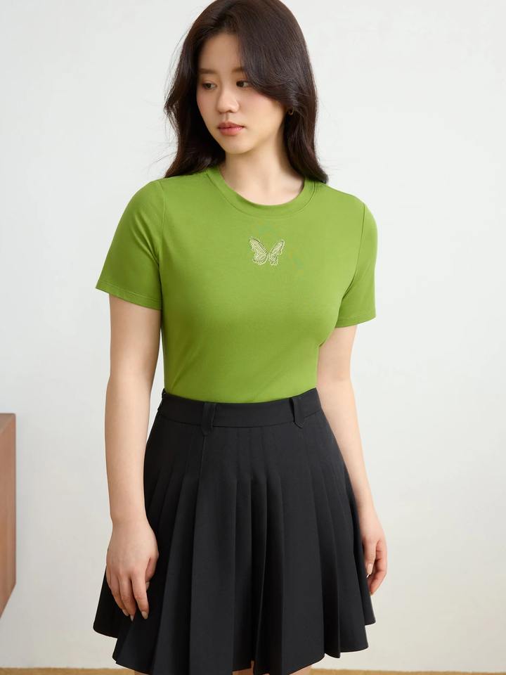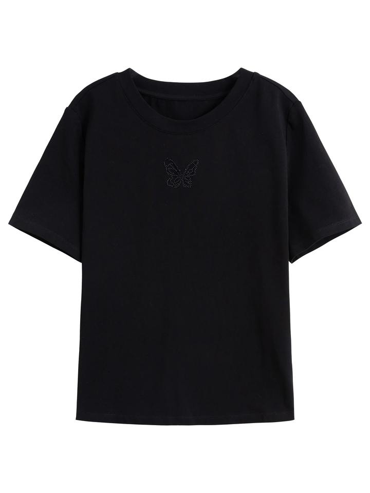 เสื้อยืดแขนสั้นผ้าฝ้ายผสมสแปนเด็กซ์พิมพ์ลายดิจิตอล ระบายอากาศได้ดี คอวี สไตล์ลำลองสำหรับฤดูร้อน ผู้หญิง